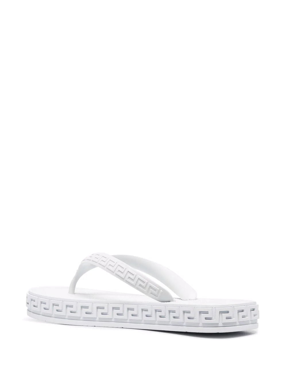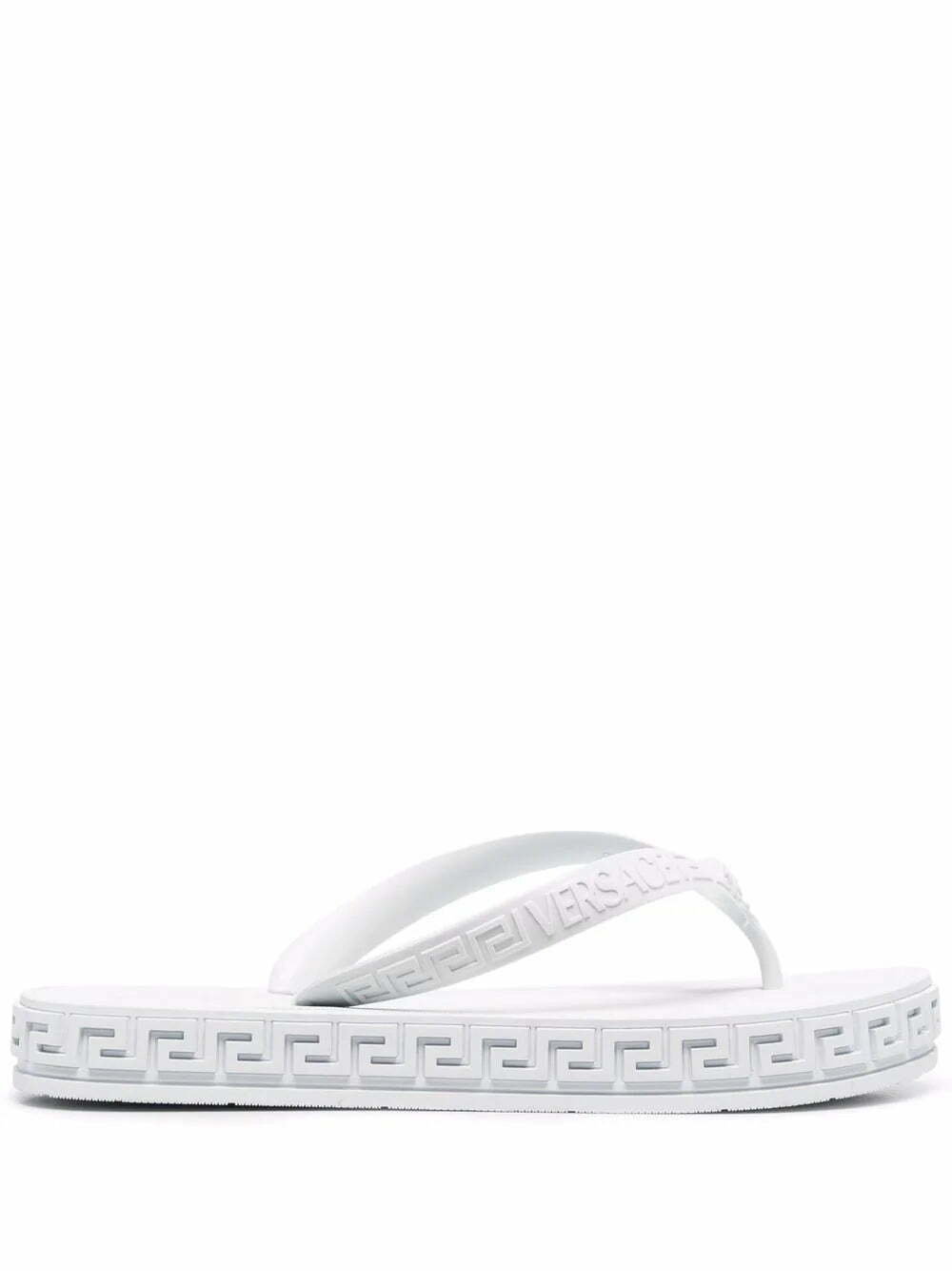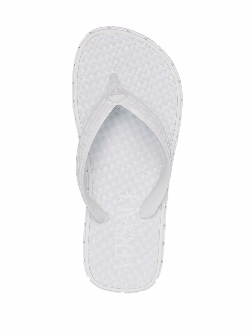 From the Greca detailing to the Medusa Head motif, two of Versace's signature motifs, these flip flops boast the aesthetic intrinsic to the brand's DNA. A tonal white colourway adds a pared-back finish to the pair.