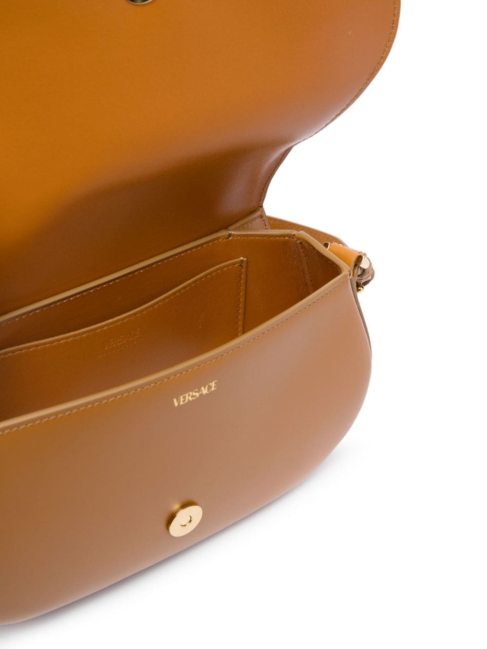 Versace's Greca Goddess line is characterised by the label's Greca chain -- a detail inspired by mythology. Part of the range, this shoulder bag is crafted from brown leather with a foldover top and a spacious interior with a slip pocket. The signature gold-tone hardware steals focus on the front flap and shoulder strap.