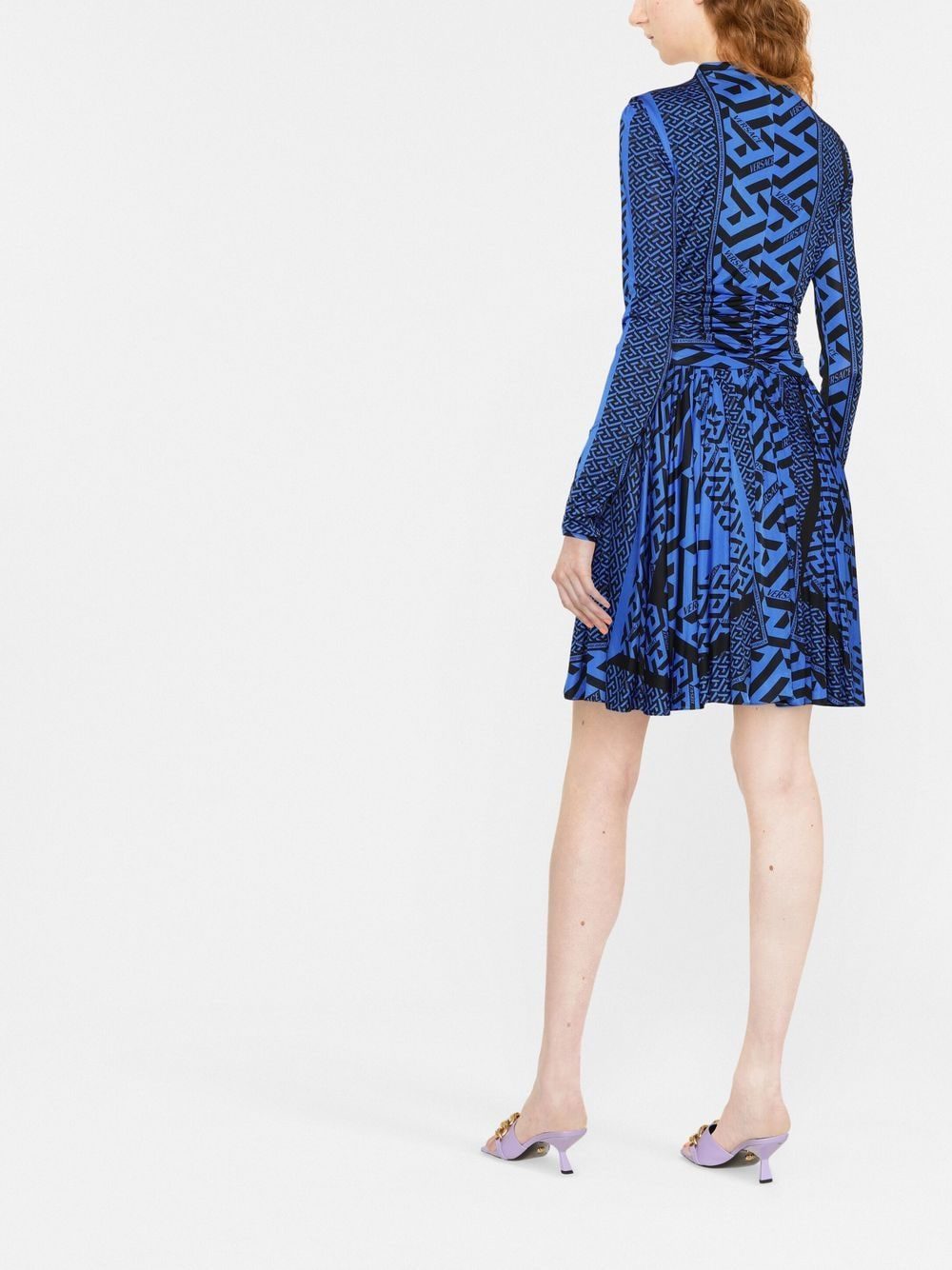 Greca-print long-sleeve dress