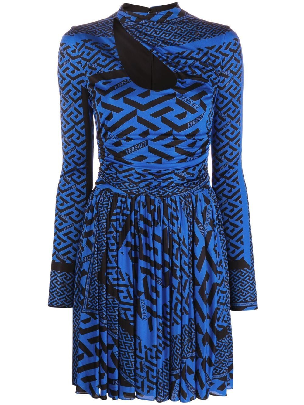 Inspired by Greek design, this long-sleeve dress from Versace features the signature Greca pattern as an all-over print. In a two-tone palette, it adds a refined edge to a bold design.
