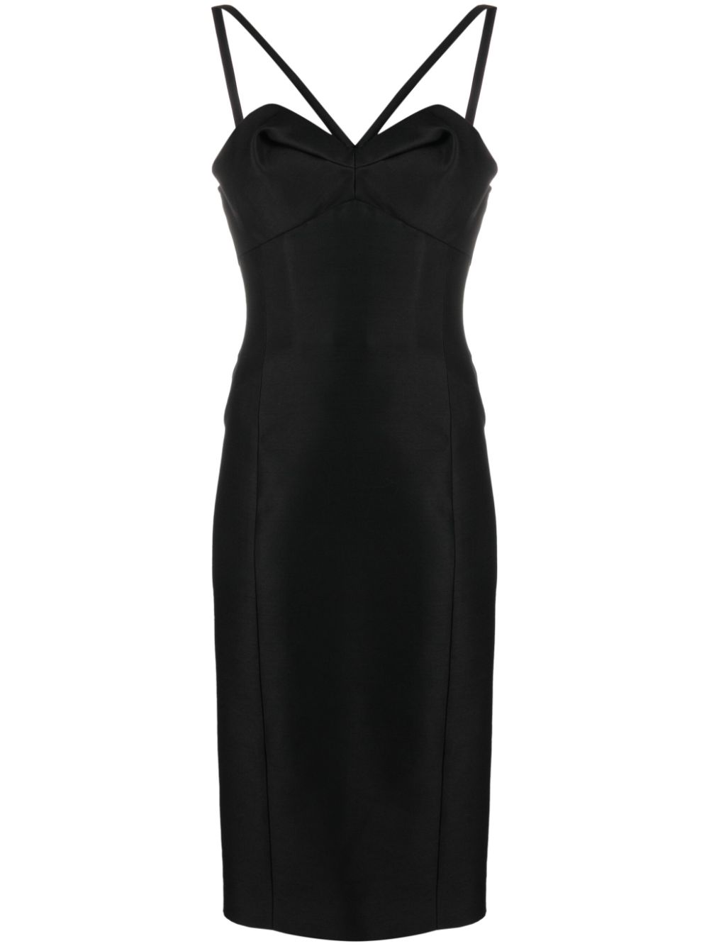 Lending a nod to archival atelier styles, this Versace dress is characterised by its folded bustier and corsetry-inspired construction. Presented in a black hue, it's brought to life by the halterneck straps that decorate the chest and the fitted cut.