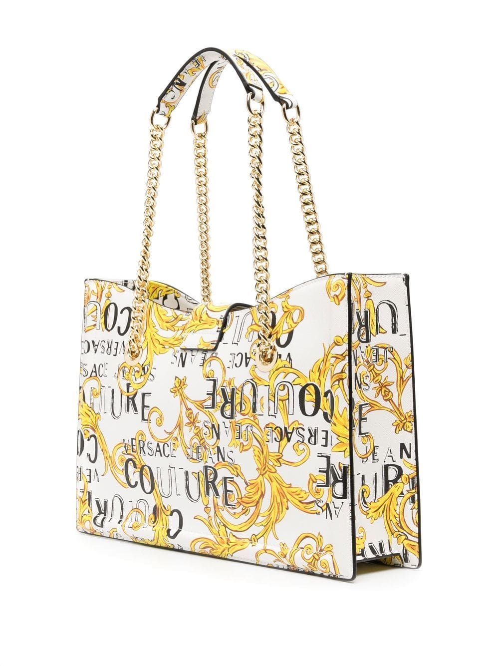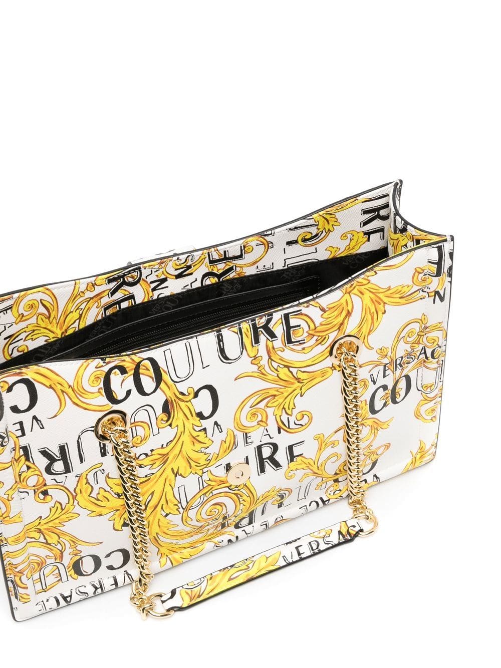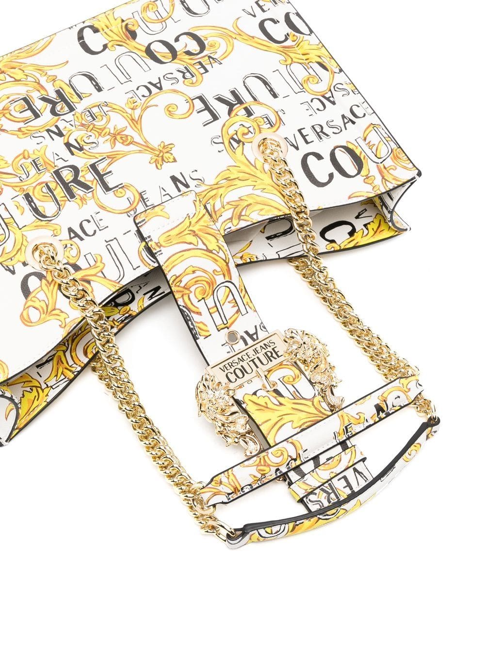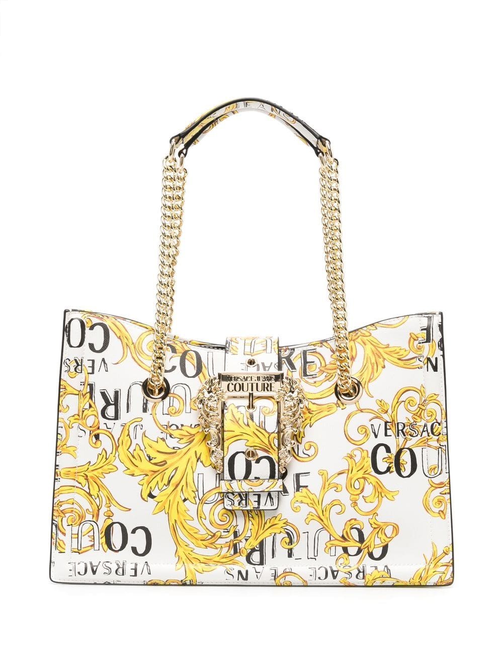 Adorned with a recognisable Barocco print throughout, this white tote bag from VERSACE JEANS COUTURE is elevated with polished gold-tone hardware whilst seamlessly evoking the brand's bold and opulent approach to accessories for SS23.