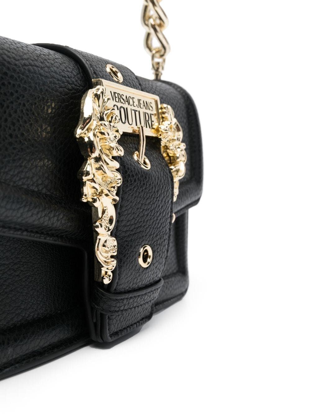 Versace Jeans Couture channels the mainline's high-octane spirit in the vibrant construction of this shoulder bag. Presented in black, it's decorated with an engraved Baroque buckle that lends a nod to the Italian house’s unmistakably confident aesthetic.