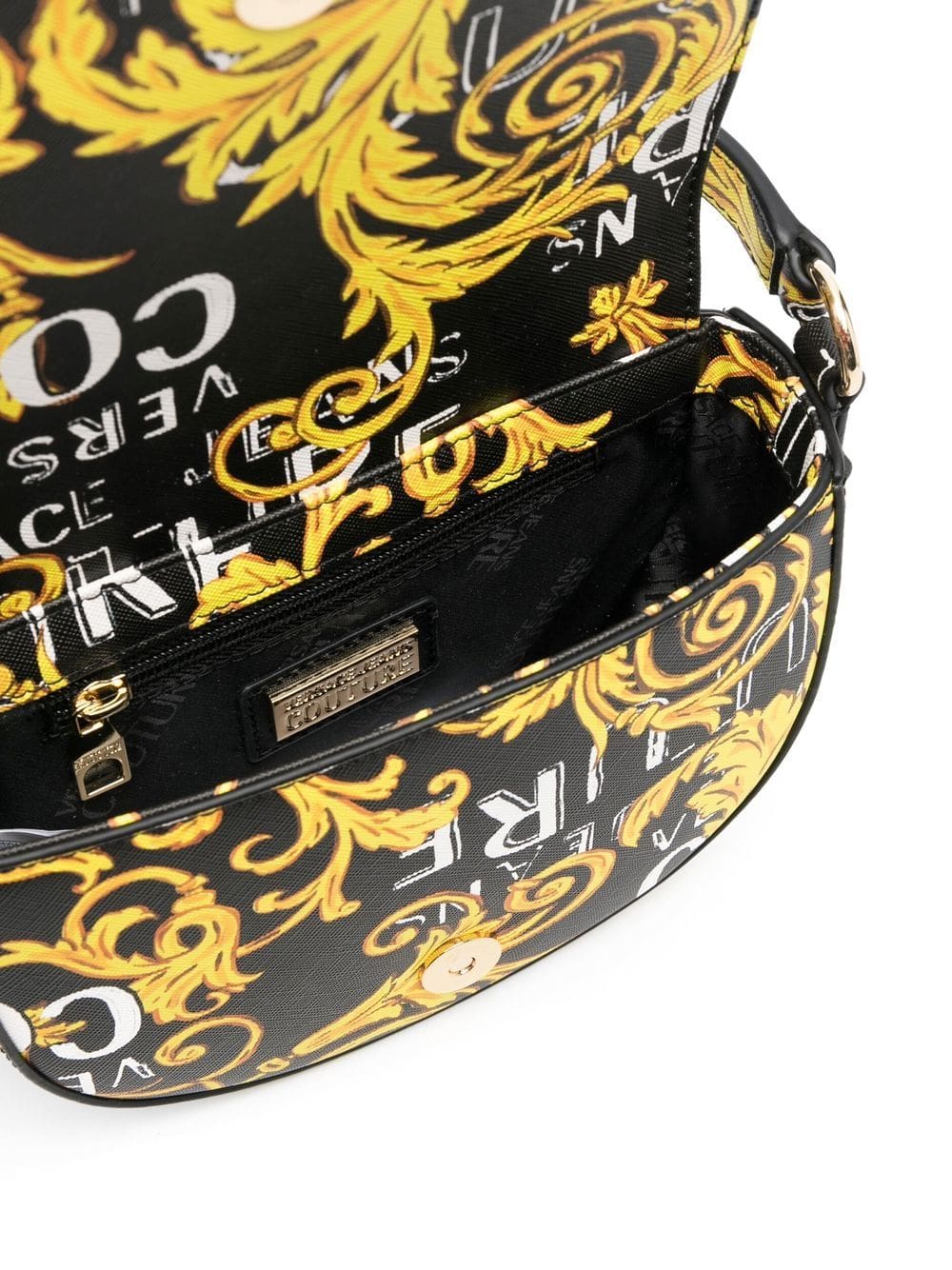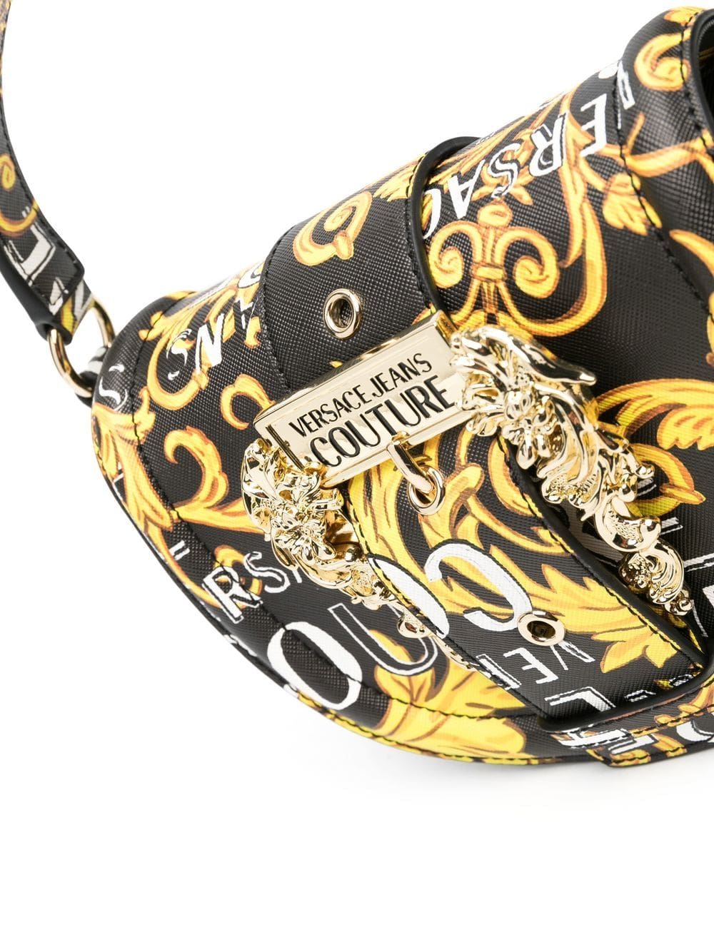 black/white/yellow faux leather signature Logo Brush Couture print gold-tone buckle fastening gold-tone hardware internal logo plaque main compartment internal zip-fastening pocket foldover top with magnetic fastening single top handle adjustable detachable shoulder strap