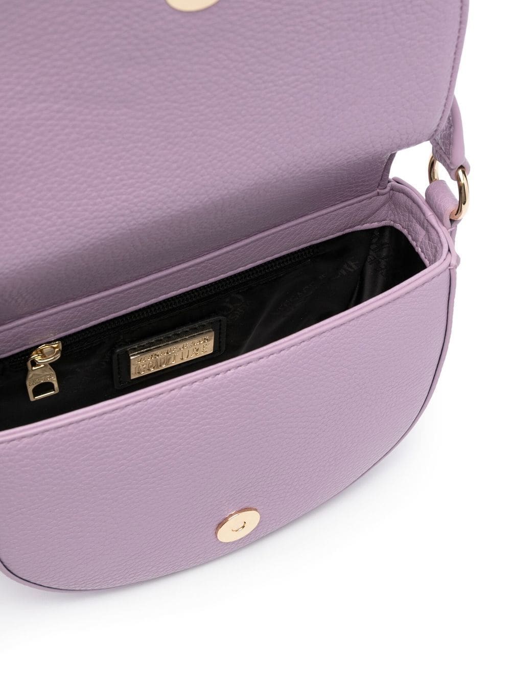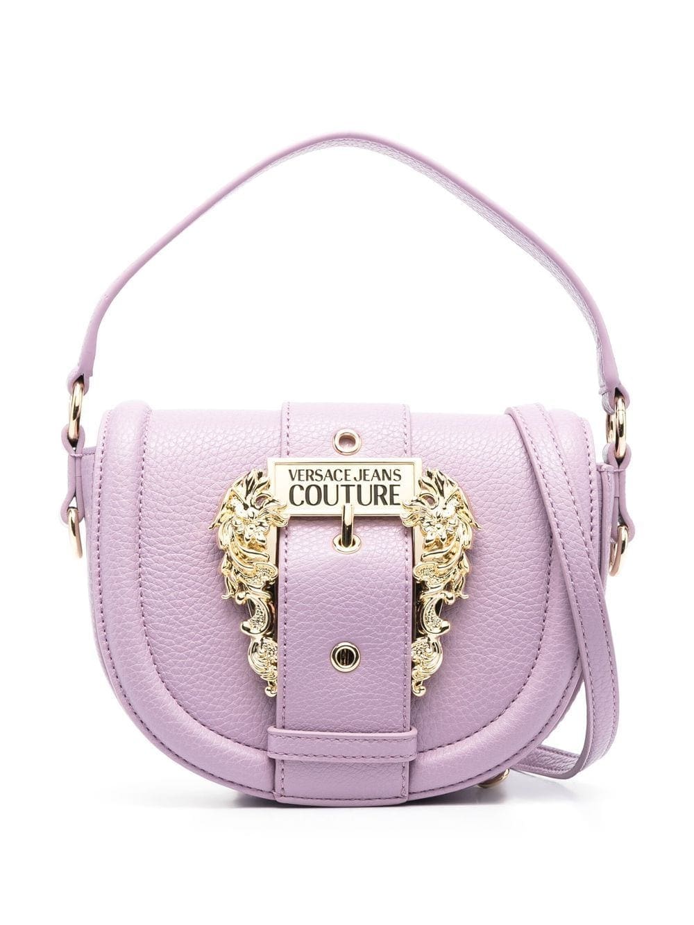 lavender purple grained texture gold-tone buckle fastening gold-tone hardware internal logo plaque main compartment internal zip-fastening pocket foldover top with magnetic fastening single top handle adjustable detachable shoulder strap