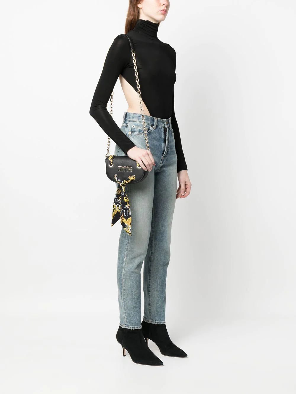 - faux-leather and chain-link shoulder strap