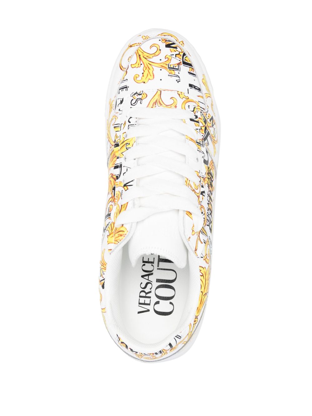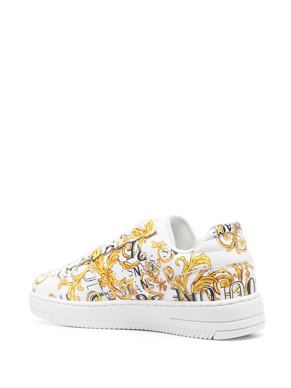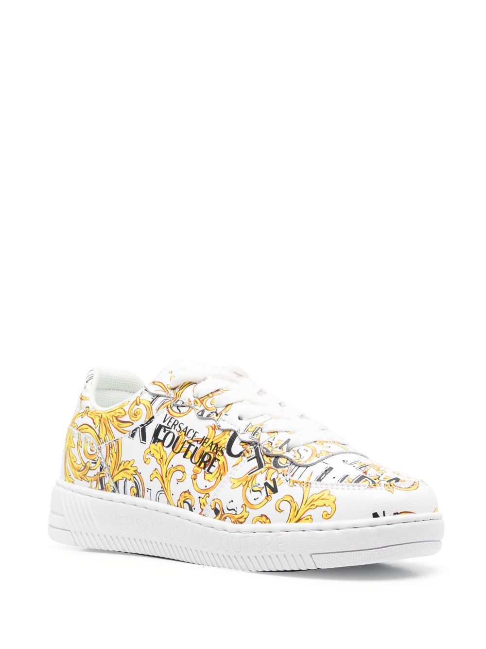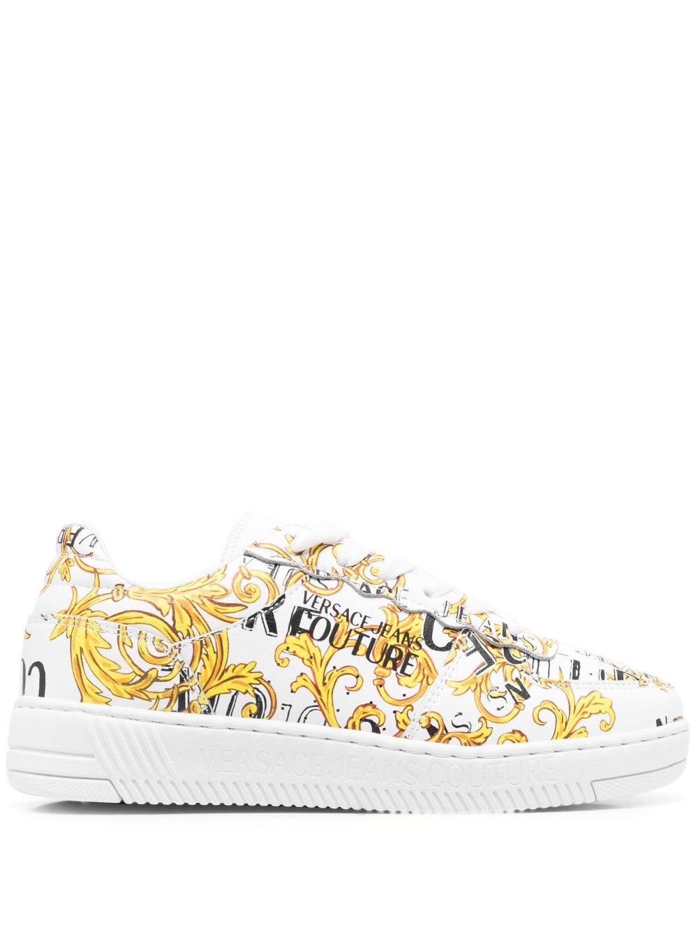 white/yellow gold calf leather baroque-pattern print logo print to the side round toe front lace-up fastening flat rubber sole