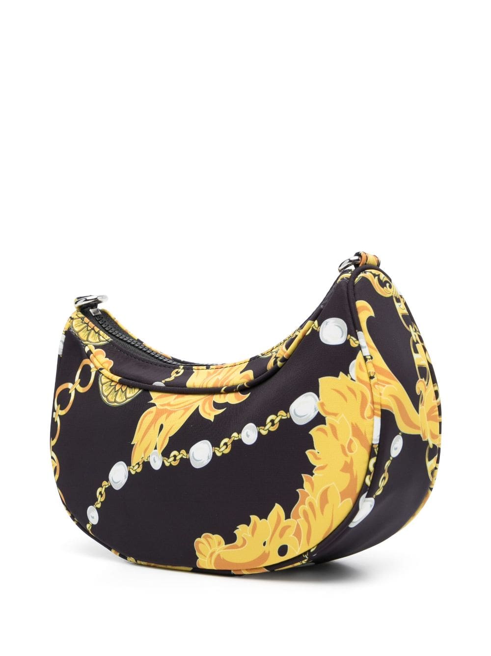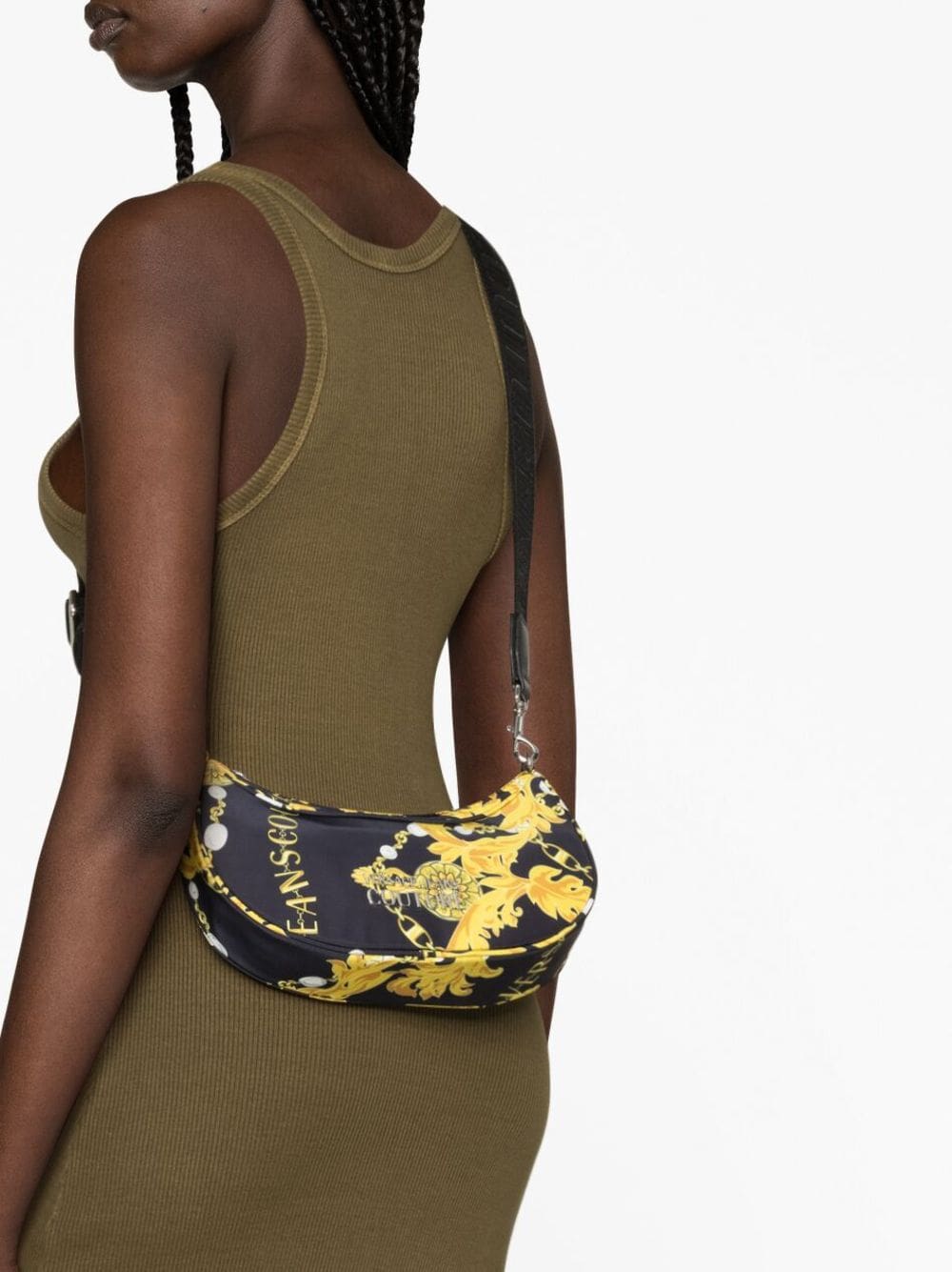 Versace Jeans Couture adds its stamp to this crossbody bag from its AW23 collection. Presented in black and gold hues, the crescent silhouette is adorned with the Italian brand's signature 'Chain Couture' pattern all over for a distinctive finish.