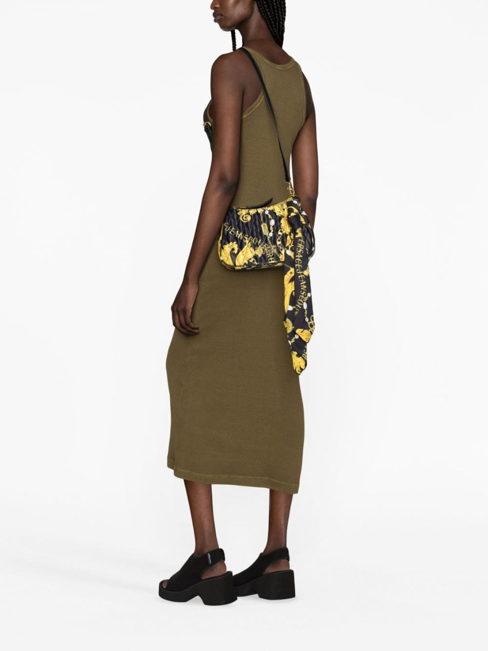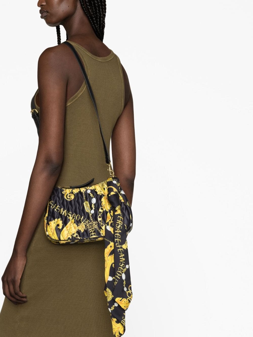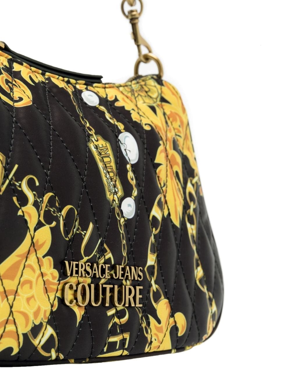 Versace Jeans Couture adds its stamp to this crossbody bag. Presented in black and gold hues, this slouchy style is adorned with the Italian brand's signature barocco pattern all over.