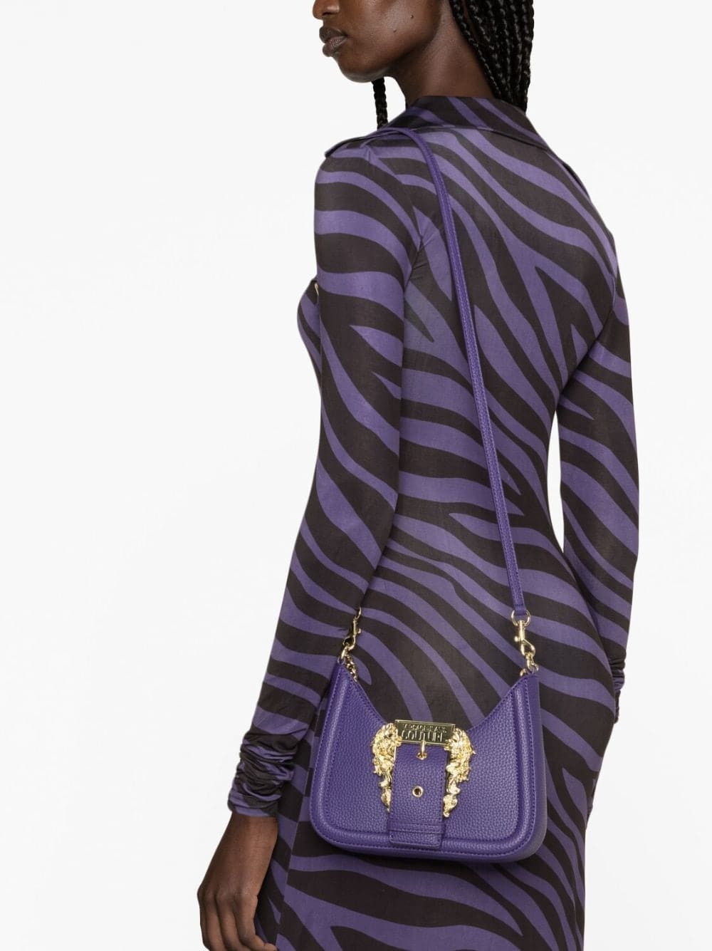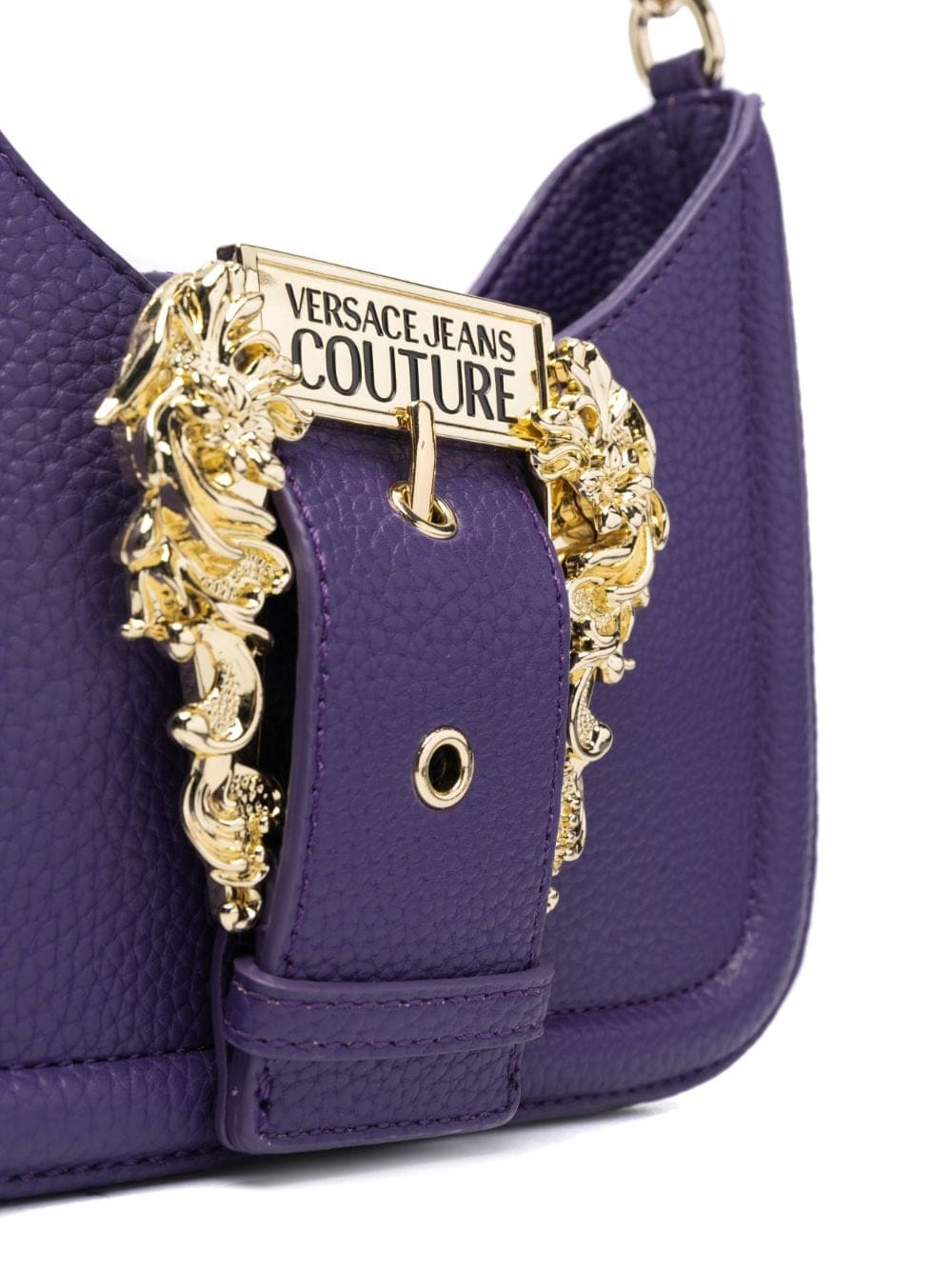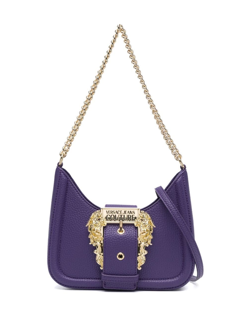 This Versace Jeans Couture shoulder bag is defined by the gold-tone Baroque buckle from the Couture 1 line. It's engraved with the brand's logo lending the piece a strong opulent and polished feel.