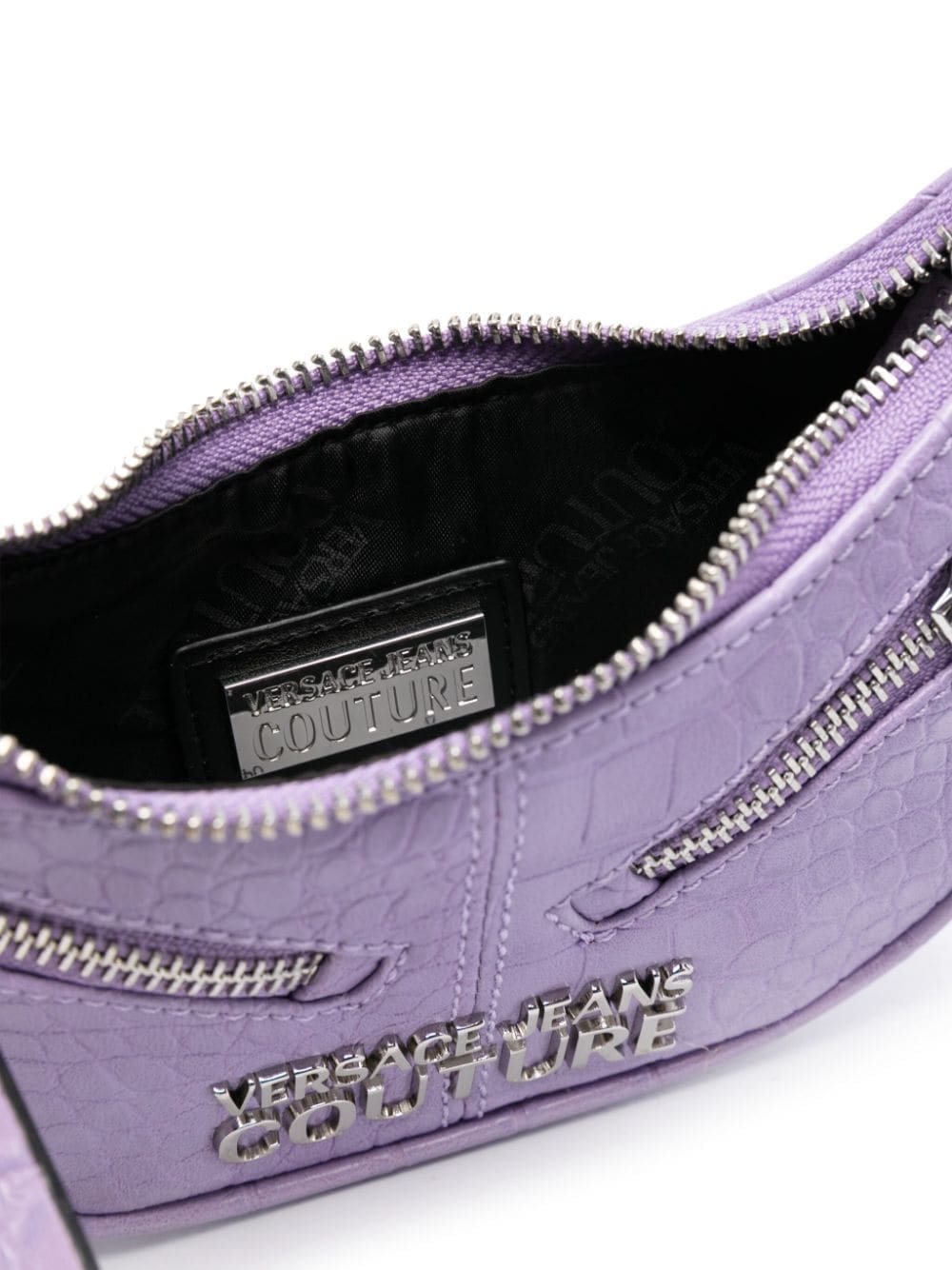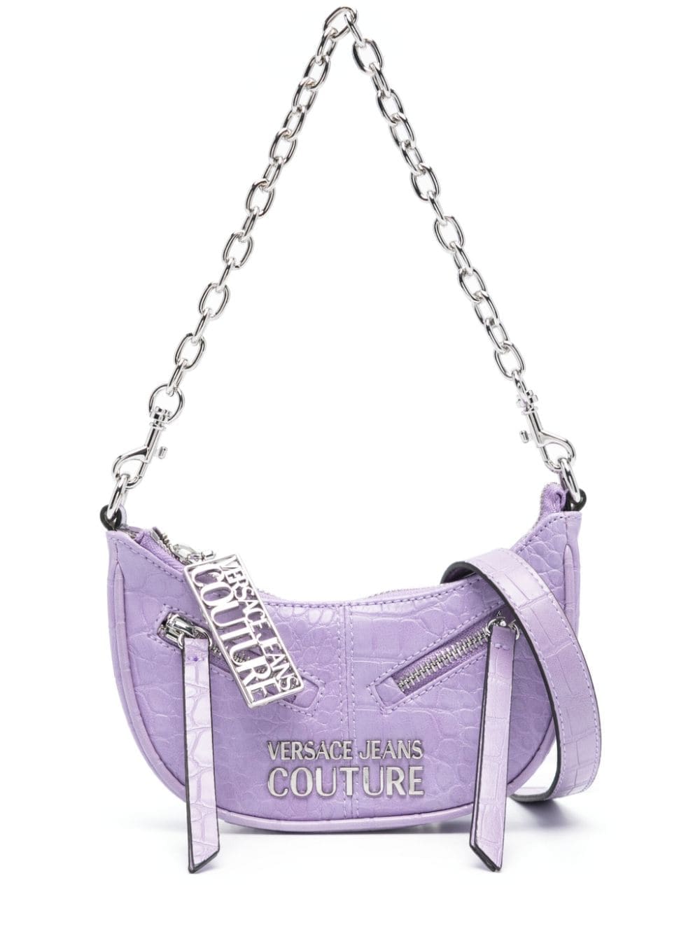 Versace Jeans Couture's faux leather shoulder bag features a crocodile-embossed effect, whilst a silver-tone logo plaque sits at the front.