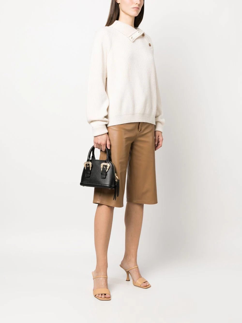 Versace Jeans Couture channels the mainline's high-octane spirit in the construction of this faux leather tote bag. Characterised by its miniature silhouette, it's decorated with engraved decorative buckles that lend a nod to the Italian house’s unmistakably confident aesthetic.