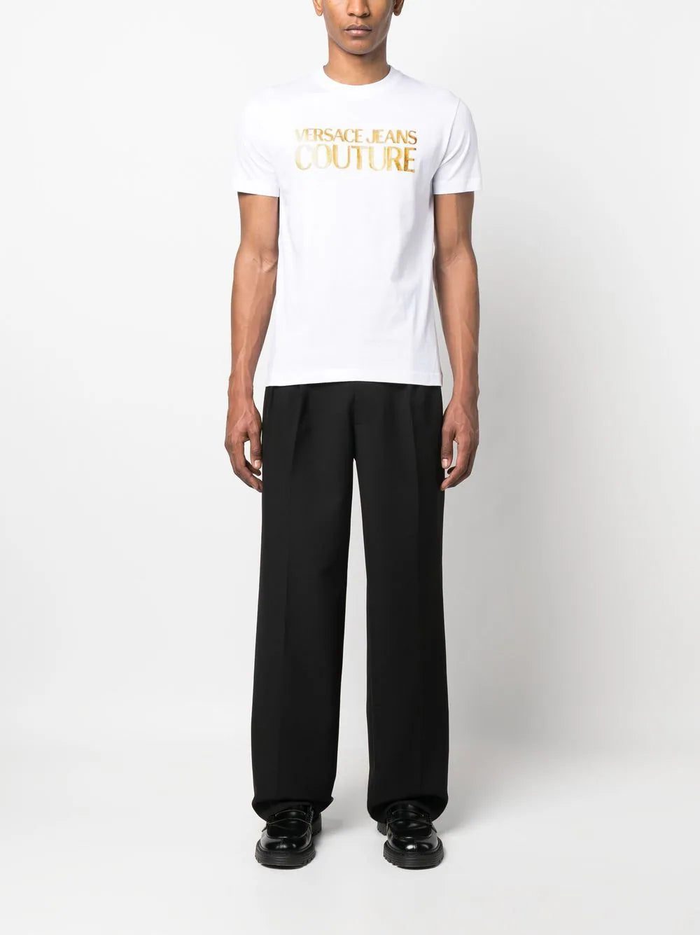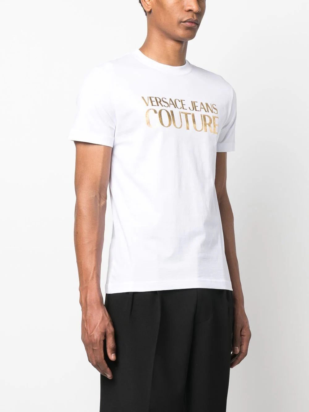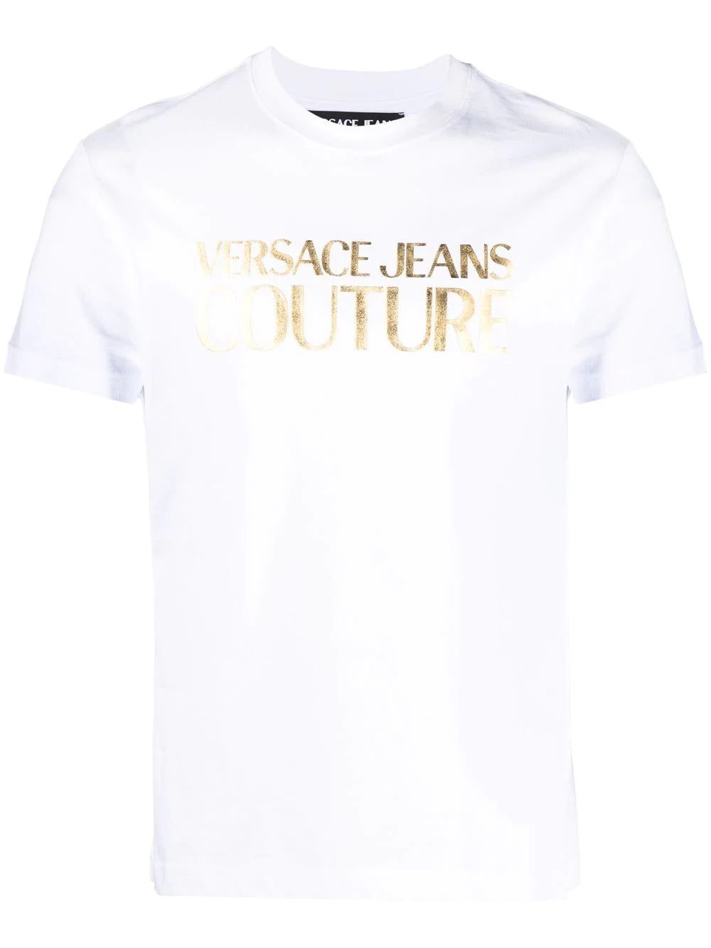 foil logo cotton T-shirt from VERSACE JEANS COUTURE featuring white, cotton, logo print at the chest, crew neck, short sleeves and straight hem.