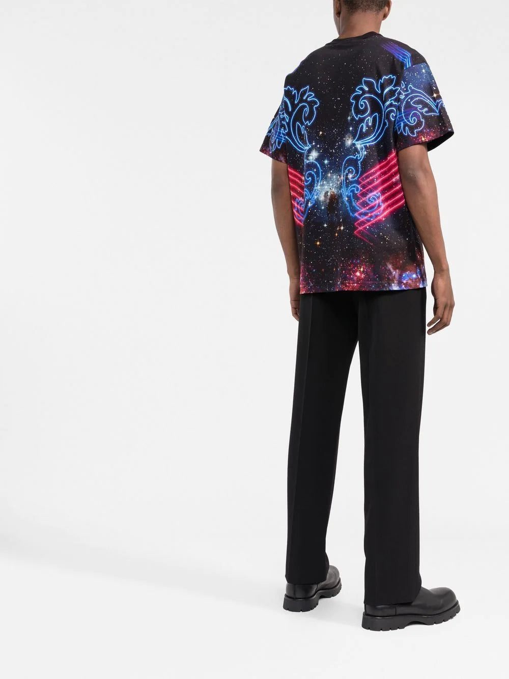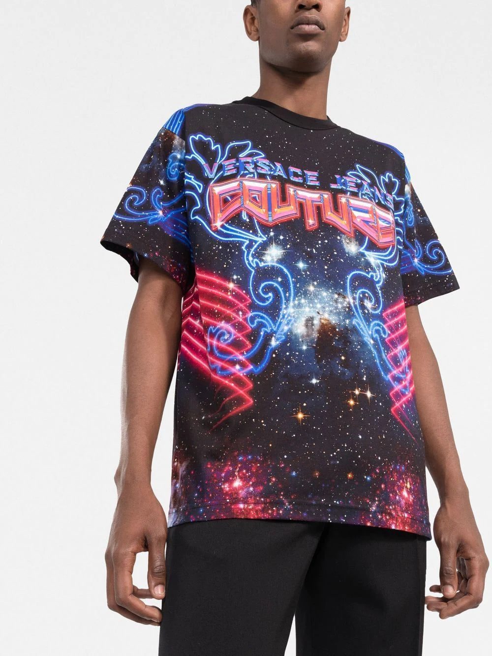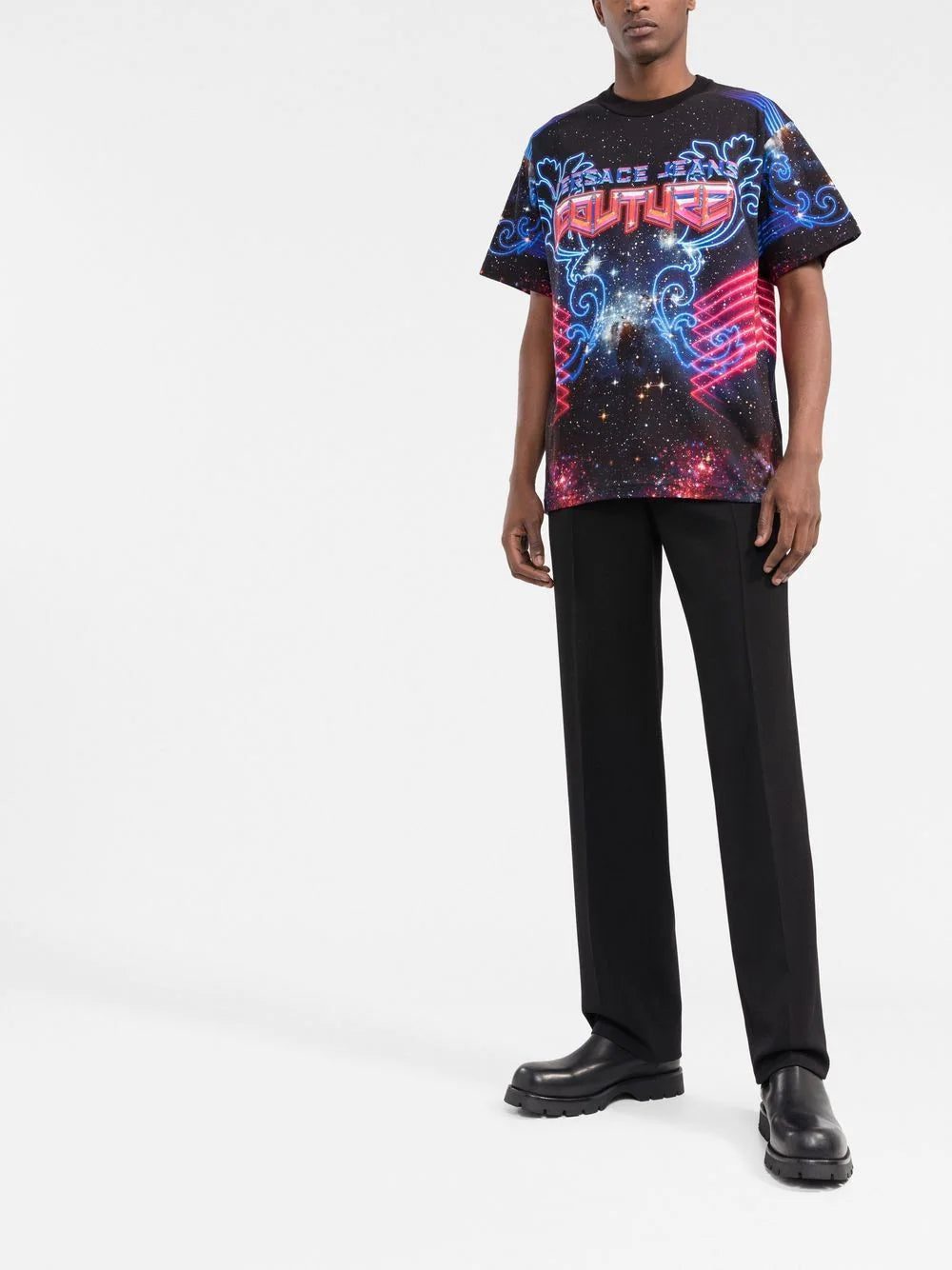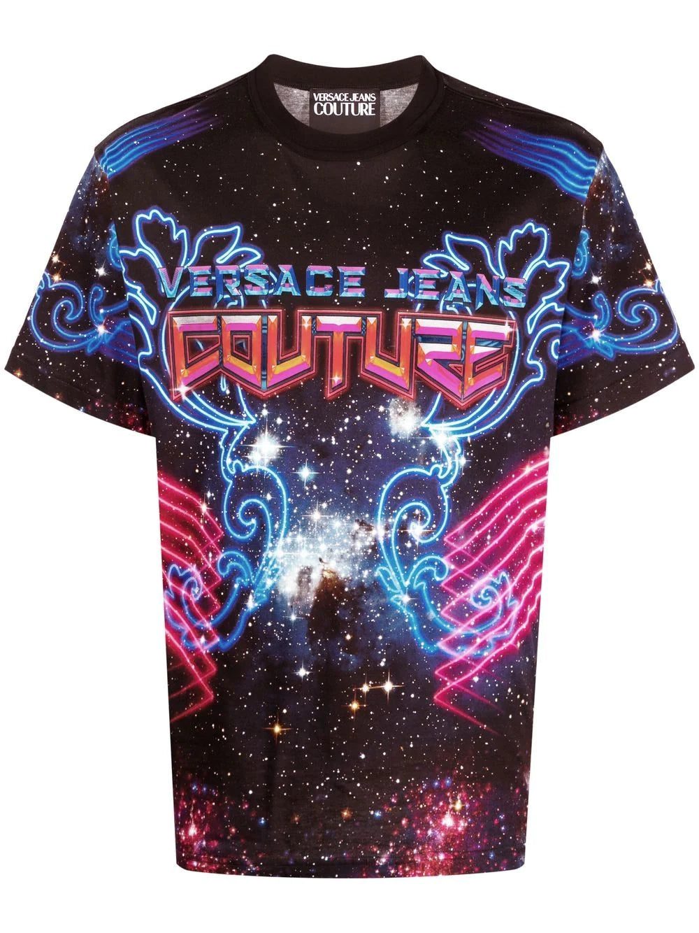 logo graphic print T-shirt from VERSACE JEANS COUTURE featuring navy blue, cotton, graphic print to the front, logo print to the front, crew neck and short sleeves.