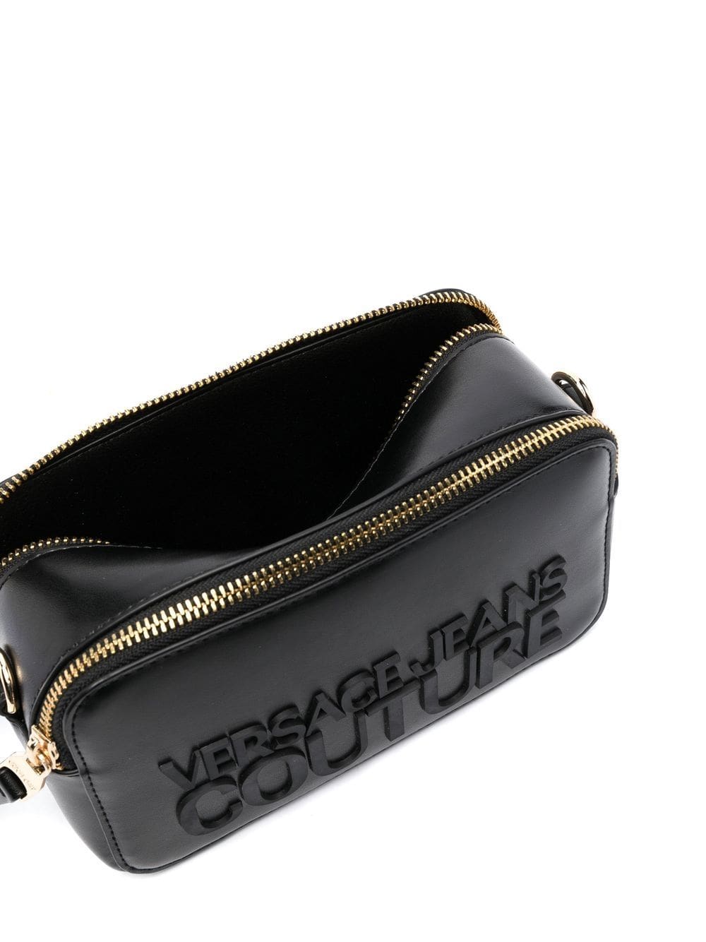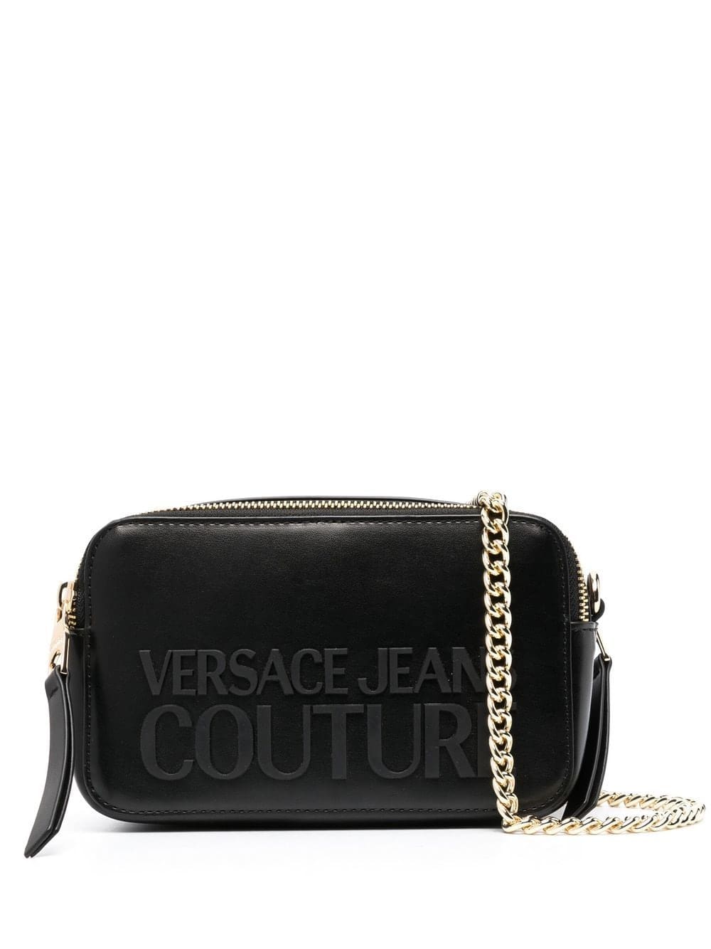 Boasting the brand's logo lettering to the front, this crossbody bag from Versace Jeans Couture is crafted from smooth faux leather in a black colourway. The piece is designed with two detachable chain-link shoulder straps for added styling options.