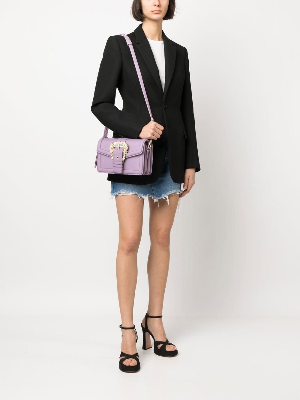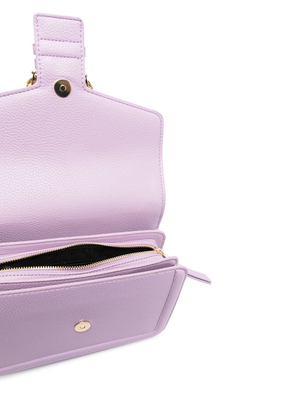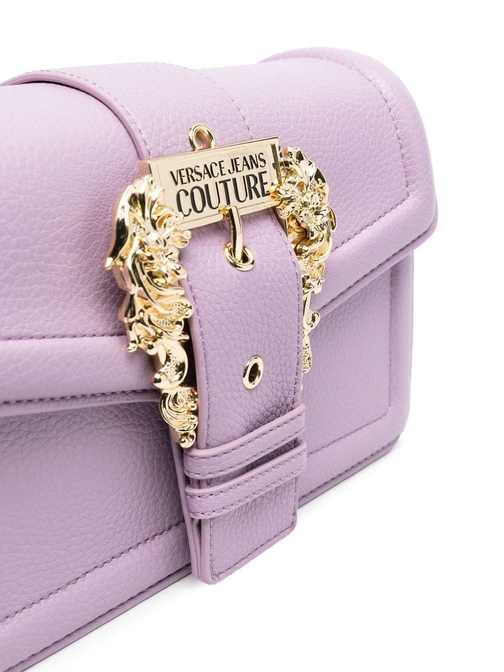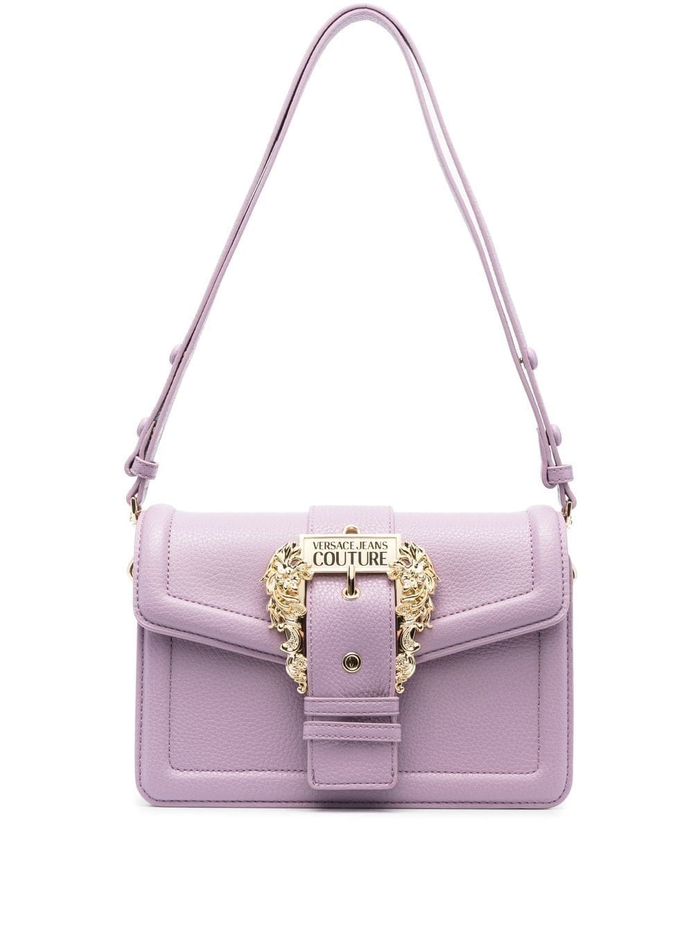 lilac purple faux leather grained texture gold-tone logo plaque decorative buckle detailing gold-tone hardware foldover top with magnetic fastening adjustable detachable shoulder strap top zip fastening partitioned compartment rear magnetic-fastening pocket slip pocket to the front This piece comes complete with a protective dust bag.