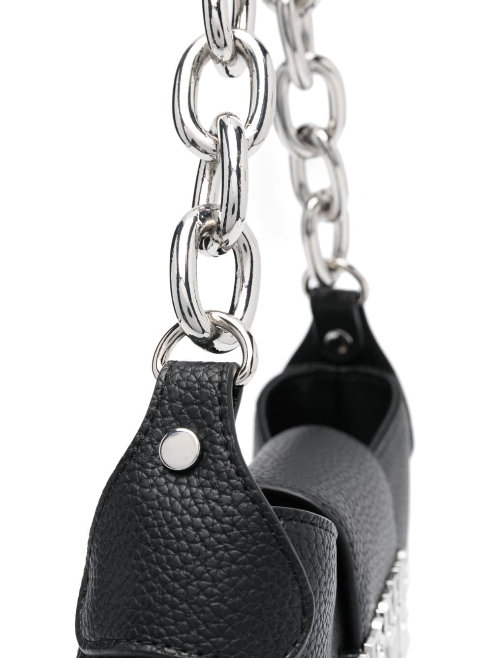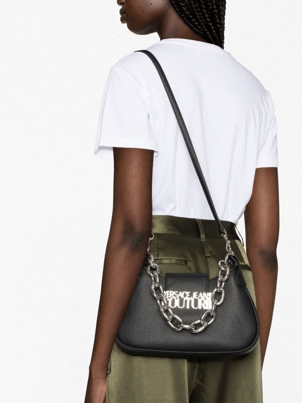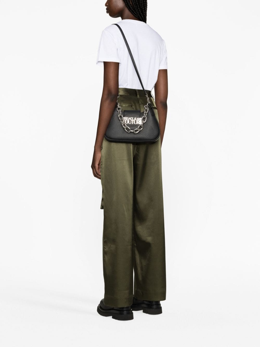 Versace Jeans Couture adds its stamp to the classic crossbody bag. Presented in black faux leather, it features a detachable shoulder strap for versatile styling, while the silver-tone logo plaque at the front adds a branding-focused finish.