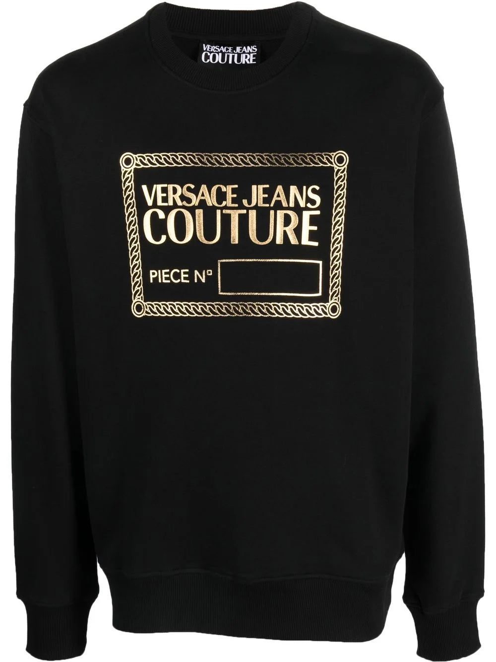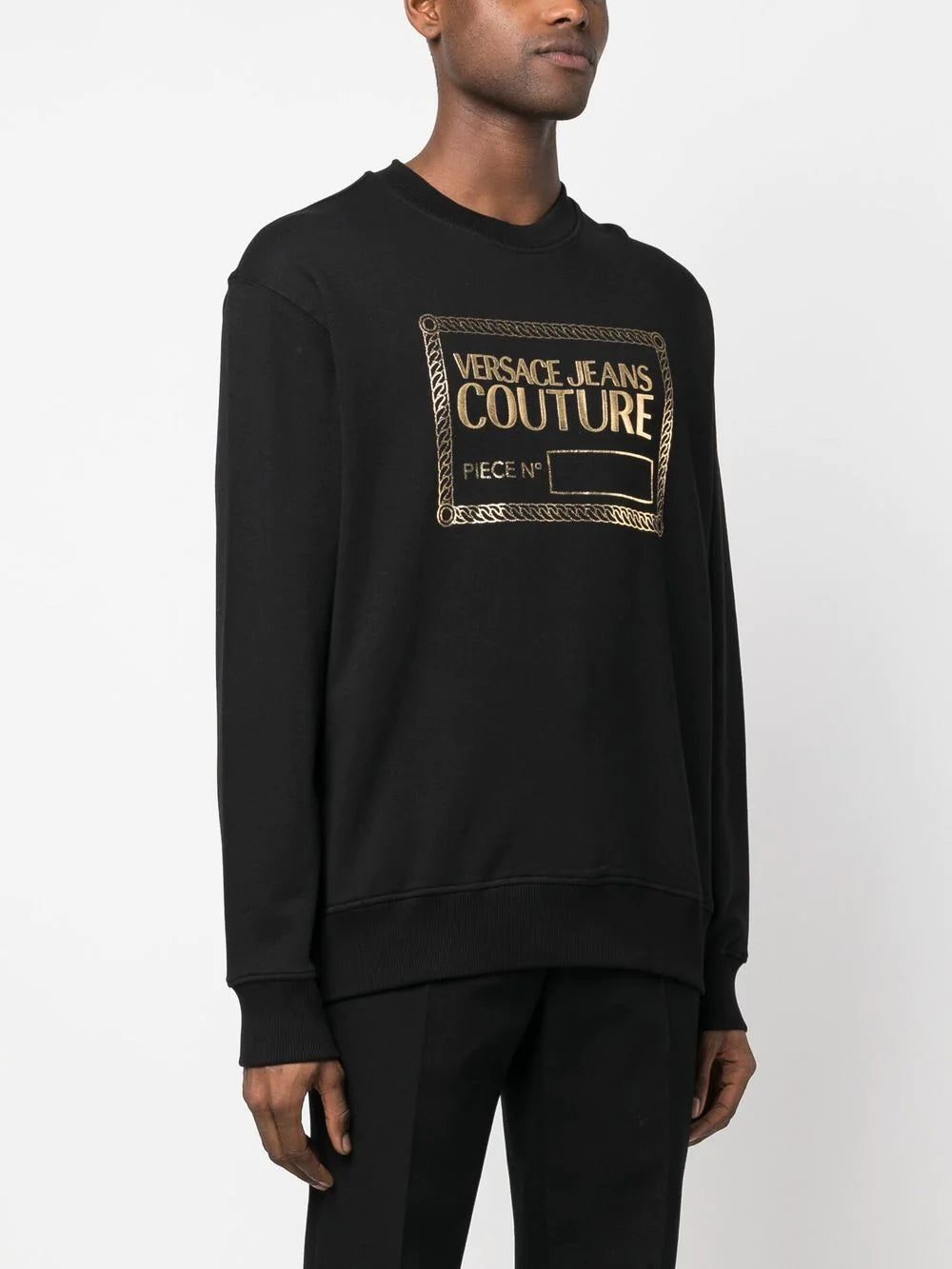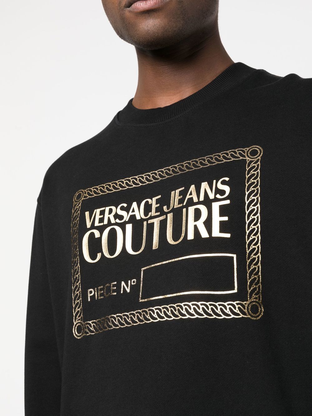 logo-print crew neck sweatshirt from VERSACE JEANS COUTURE featuring logo print to the front, crew neck, long sleeves, ribbed hem, black/gold-tone and cotton.