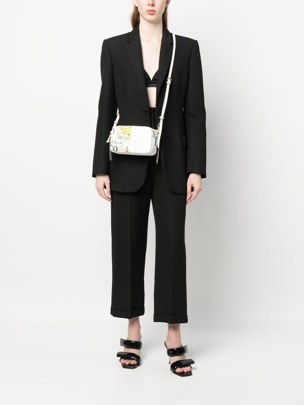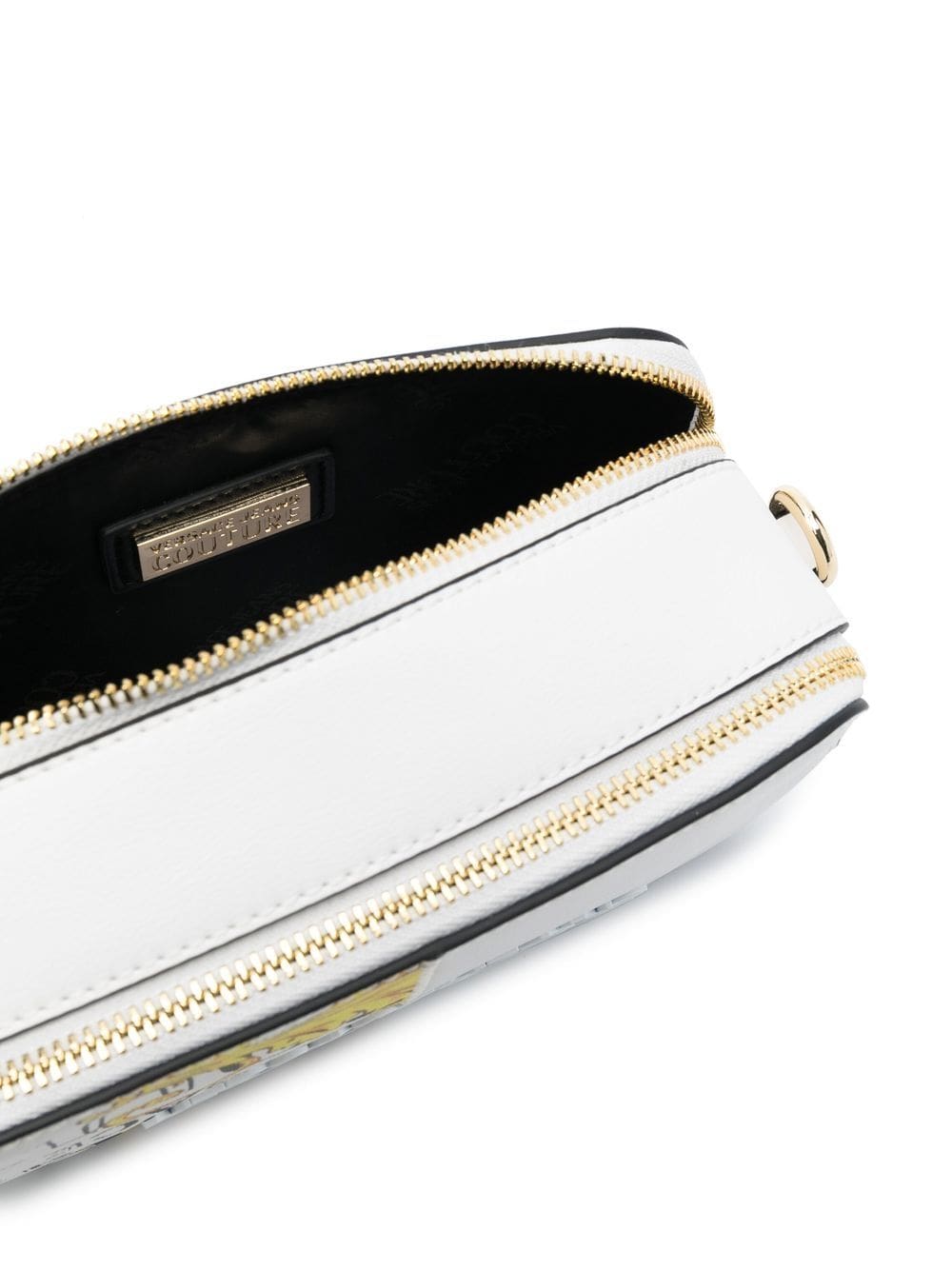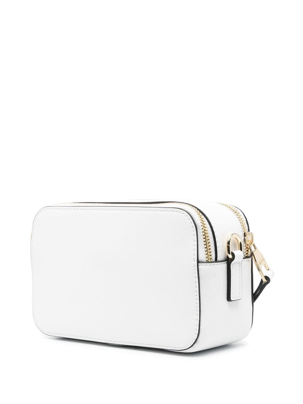 white faux leather tonal logo plaque logo print to the front top zip fastening single shoulder strap