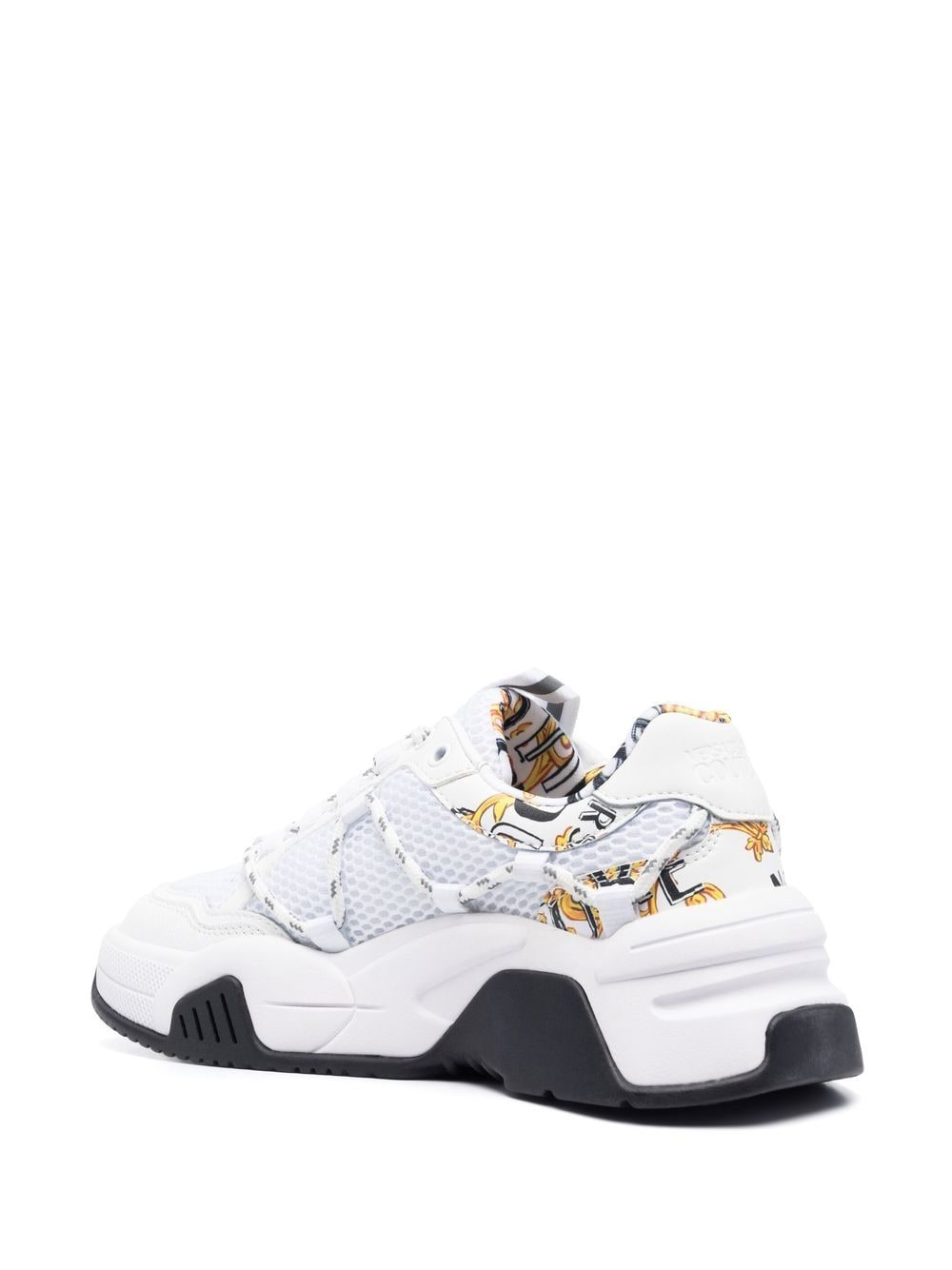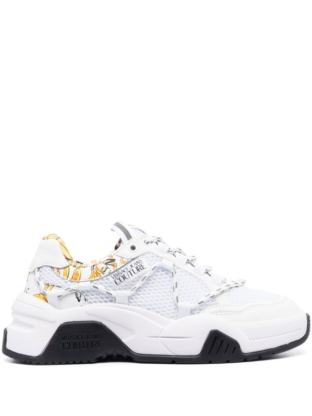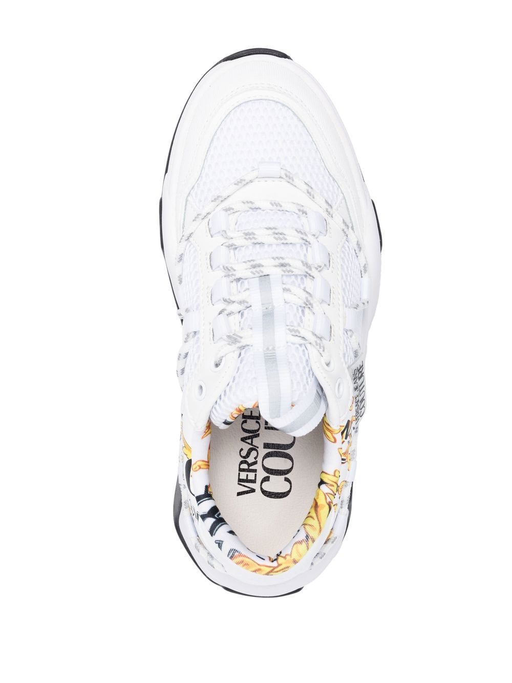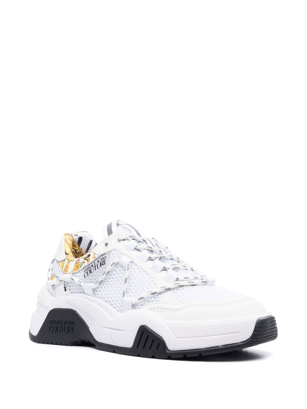 white mesh panelling leather trim logo tag round toe front lace-up fastening branded insole chunky rubber sole