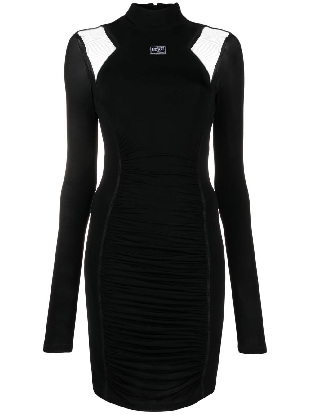 black logo patch to the front mock neck long sleeves straight hem thigh-length