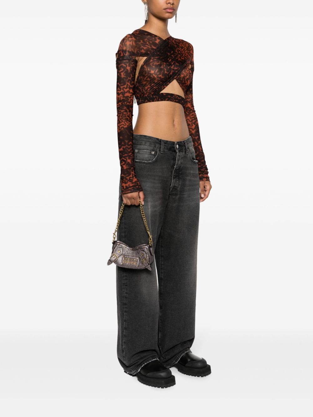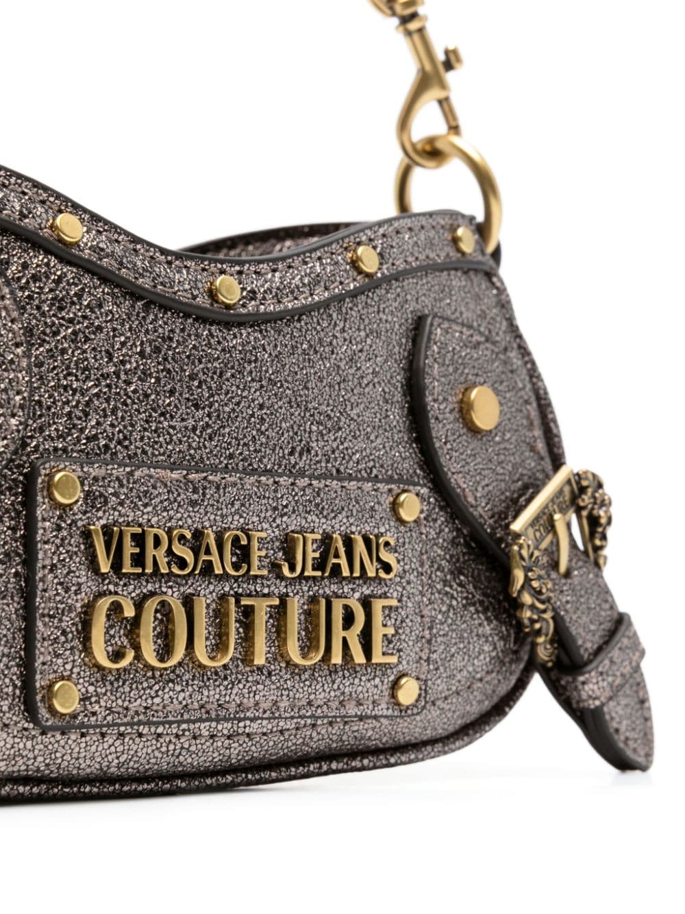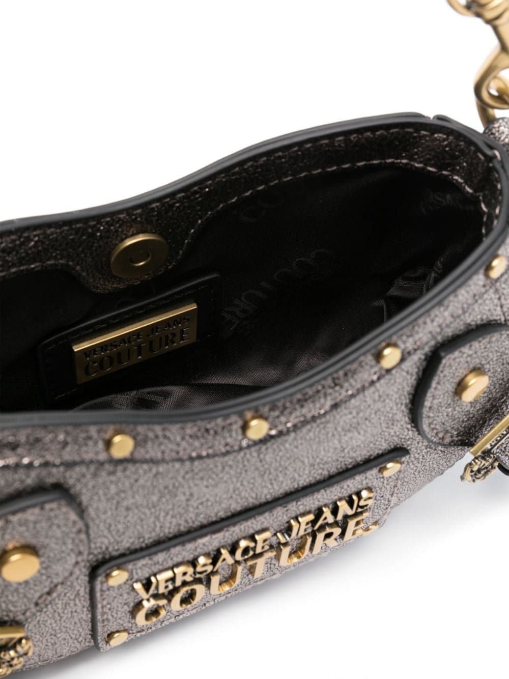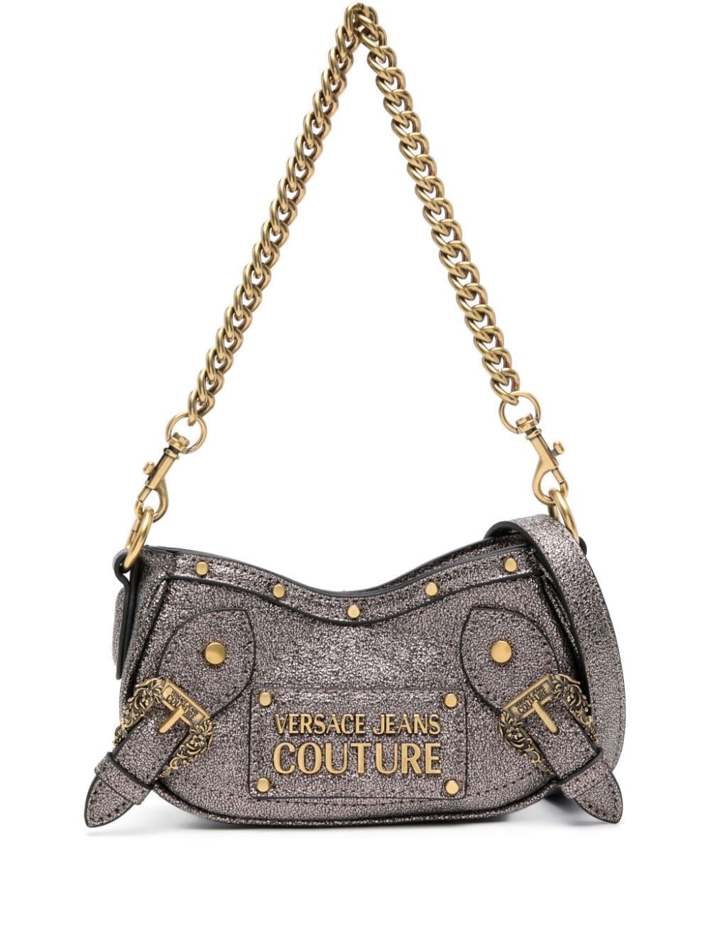 This Versace Jeans Couture crossbody bag spotlights the brand's maximalist. It’s crafted in silver faux-leather with a cracked metallic finish and doused in house codes – from the Baroque buckles and studs to the gold-tone logo plaque at the front. It comes with interchangeable straps for versatile wear.