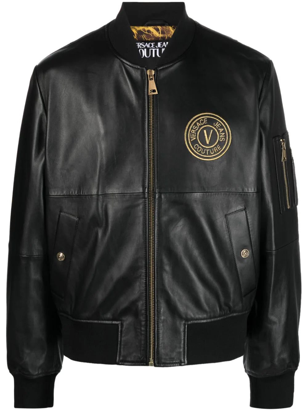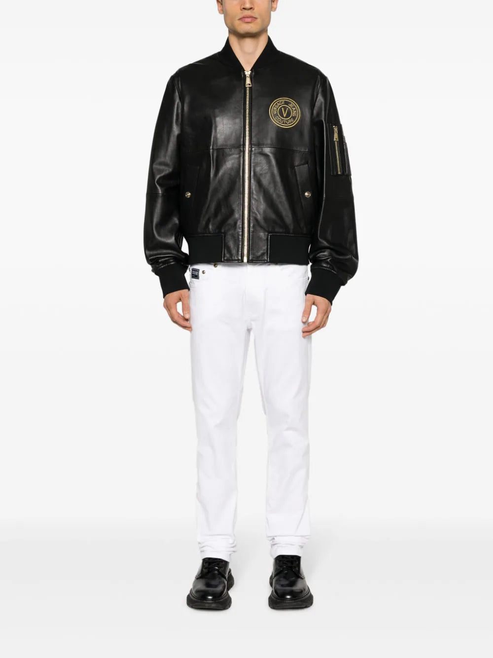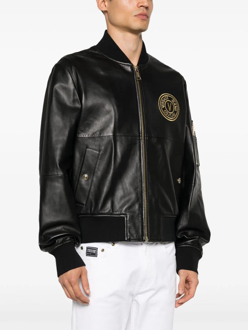 Versace Jeans Couture V-Emblem leather bomber jacket