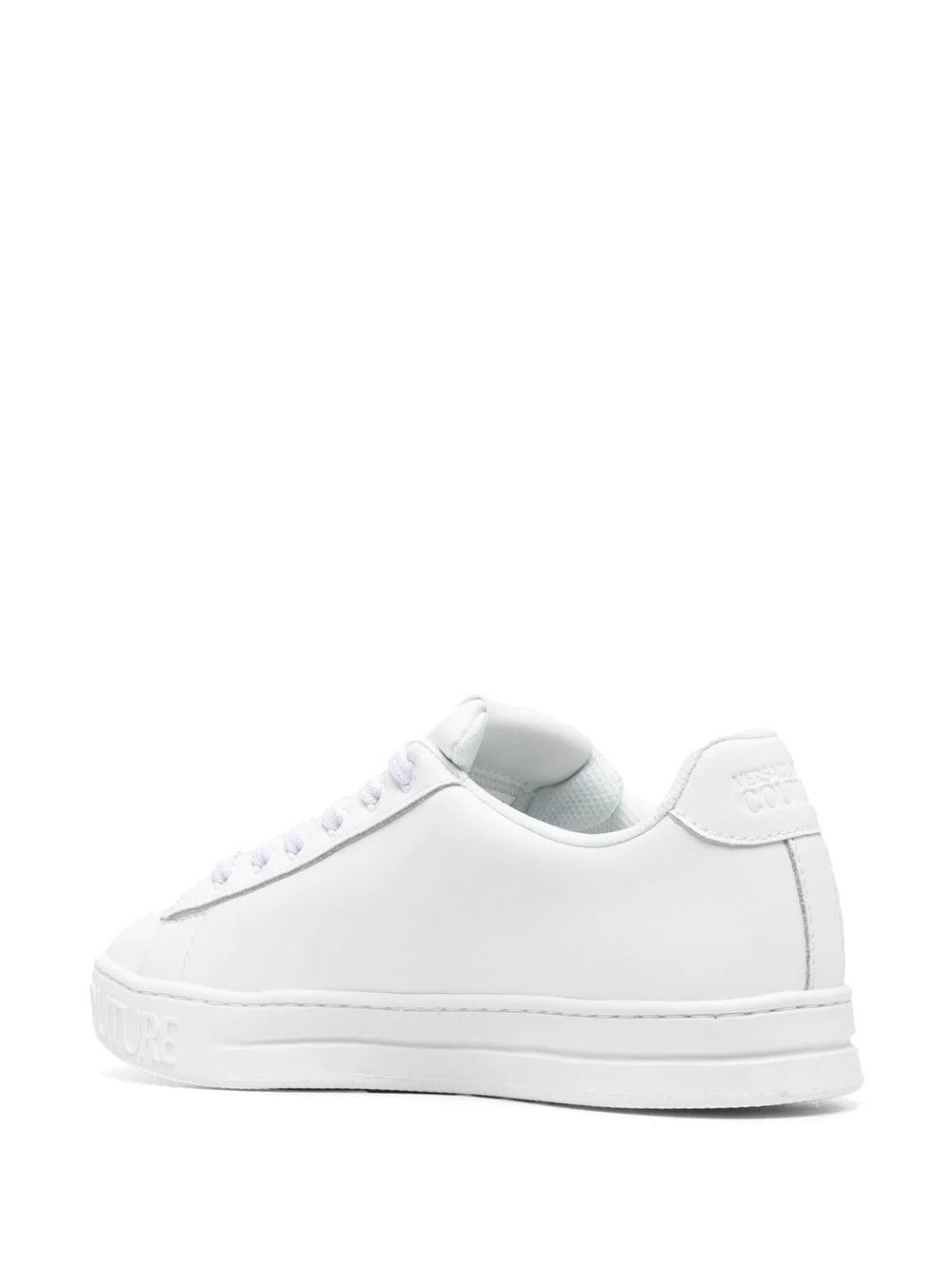 Defined by an array of branded features, these V-Emblem sneakers from Versace Jeans Couture are unmistakable in their design. The gold-tone branding stands out against the white calf leather construction, giving them a statement finish.