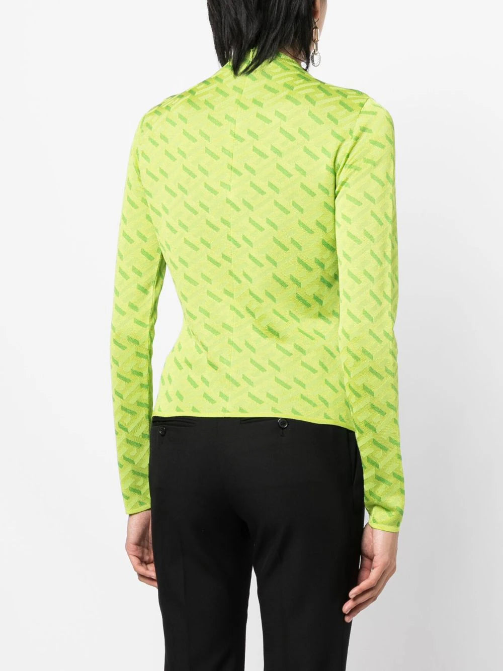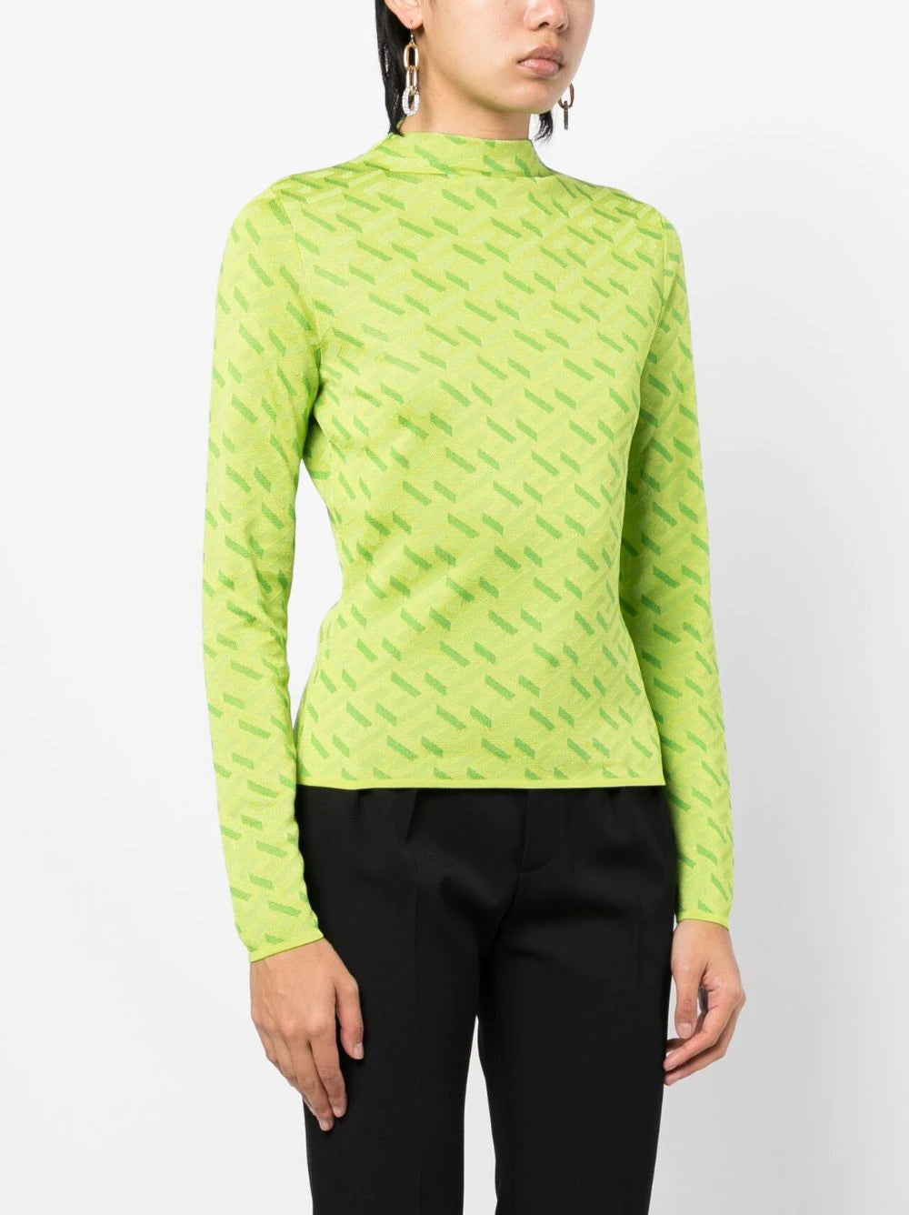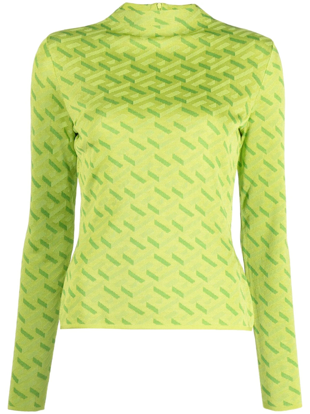 Since its introduction in 1988, Versace's iconic La Greca motif has remained a house signature. It’s reimagined as a three-dimensional monogram on this long-sleeve top in green hues.