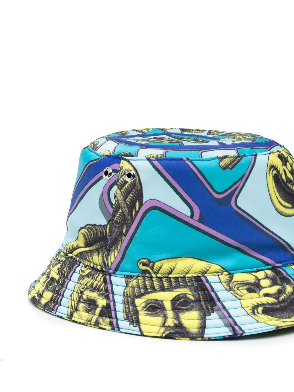 blue green decorative stitching all-over graphic print dropped narrow brim pull-on style