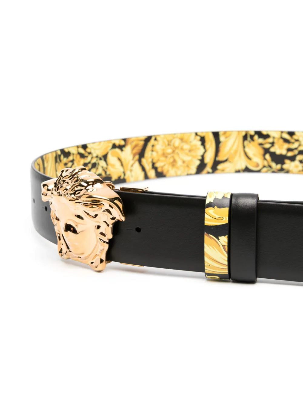 Versace revisits its iconic house codes in this soft leather belt. A polished gold-tone Medusa Head buckle elevates its Barocco printed strap.