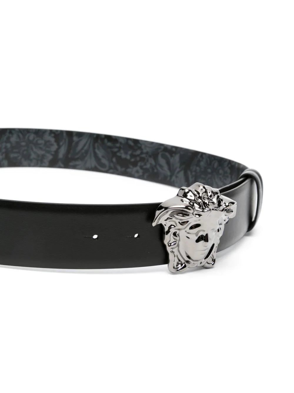 Versace revisits its iconic house codes in this soft leather belt. A polished silver-tone Medusa Head buckle elevates its Barocco printed strap.