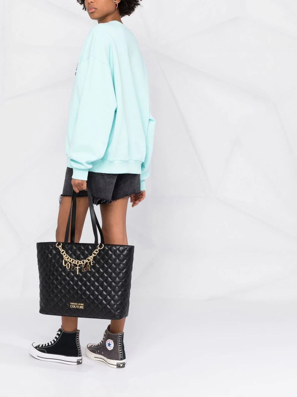 Versace logo-chain quilted tote bag
