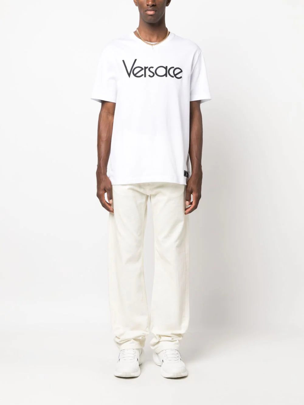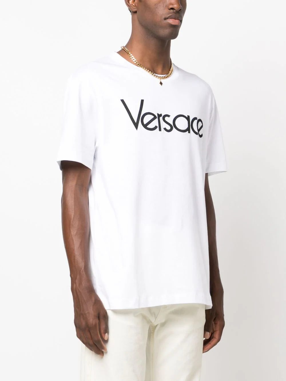 Paying homage to its roots, this white cotton Versace T-shirt is embroidered with an abbreviated version of the original ‘80s moniker at the front, which formerly included the eponymous founder’s first name.
