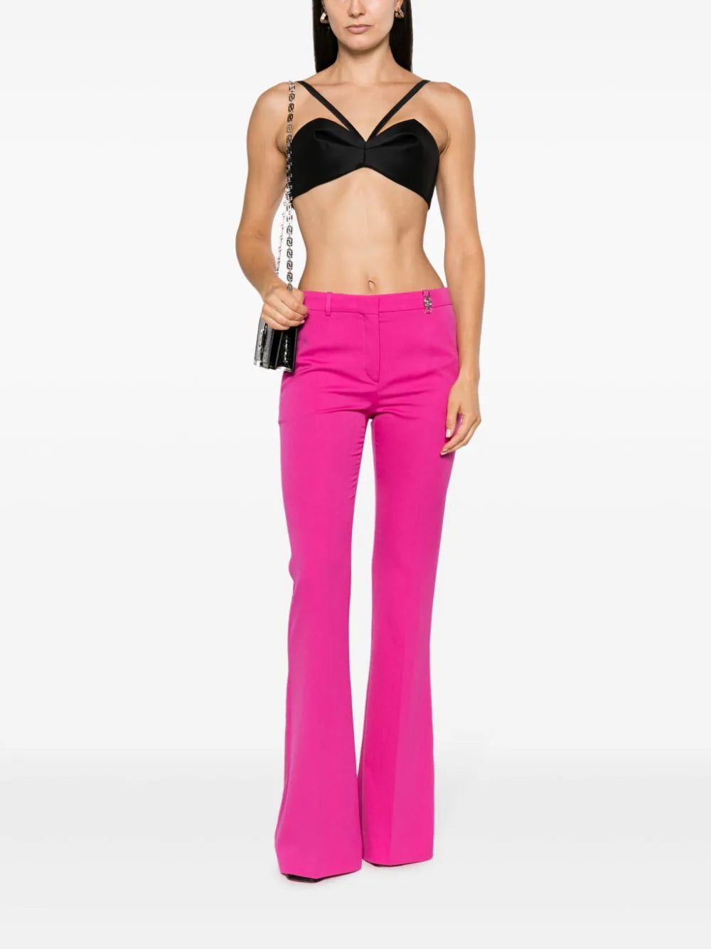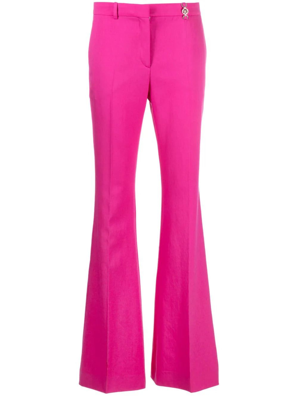 Displaying Versace's signature style, these flared trousers are cut from virgin wool in a hot-pink hue and are punctuated with gold-tone Medusa '95 hardware at the waist for a refined branded finish.