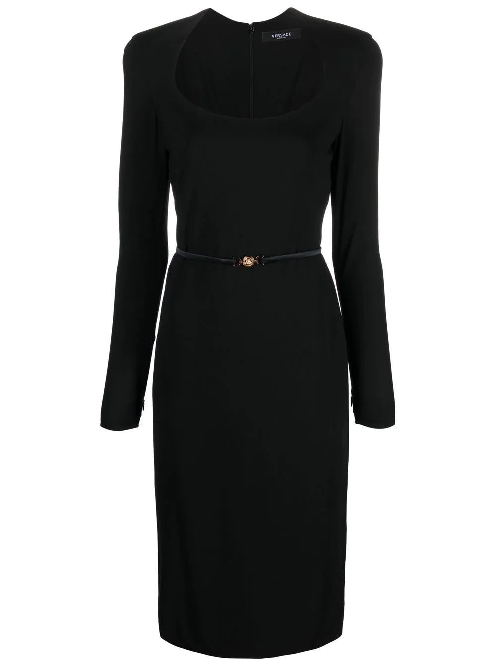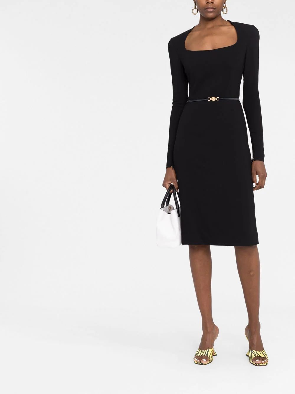 jet black plumetti panel detail sheer finish concealed rear zip fastening round neck long sleeves short length