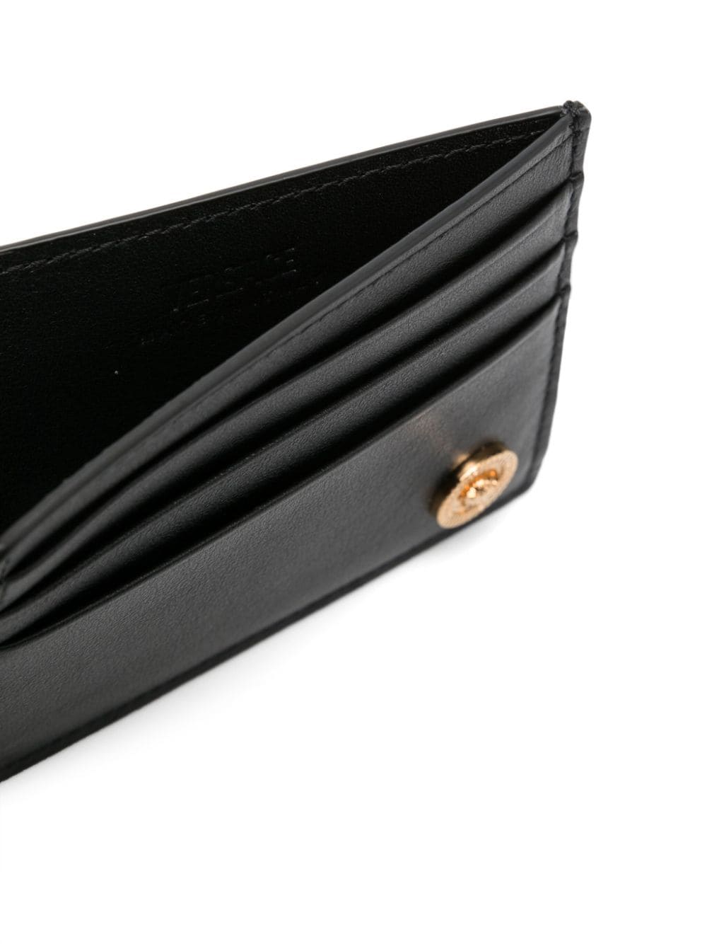 Gianni Versace's fascination for Greek mythology originated most of the brand's signature motifs. The emblematic Medusa Head is one of them, subtly placed on the front of this leather cardholder for a branded finish.