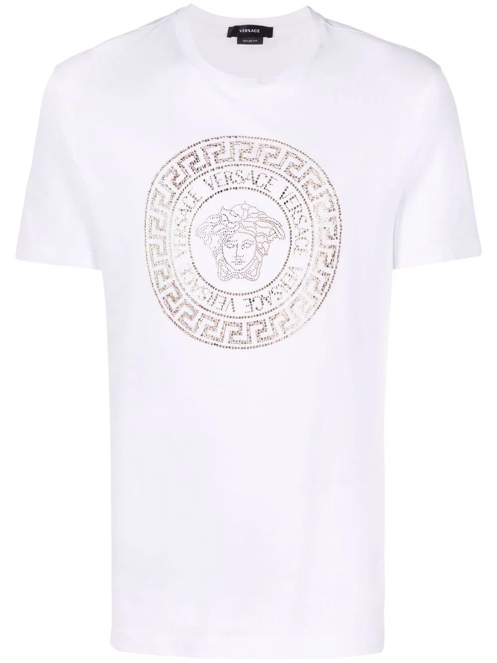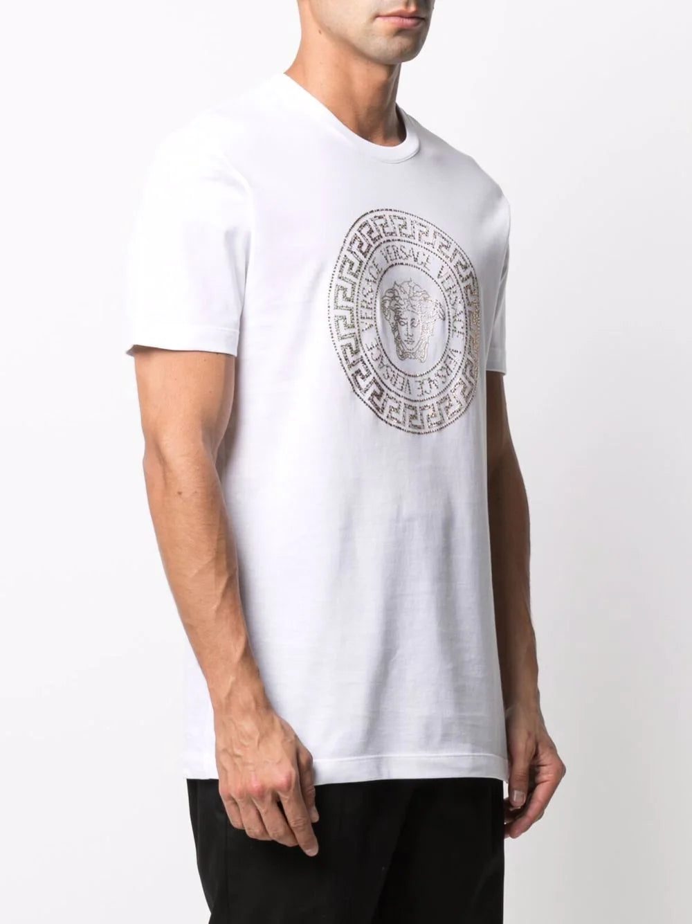 A mainstay for the brand, Versace's Medusa Head motif appears on a multitude of items year after year, as seen on this cotton T-shirt. Detailed with a crystal-embellished rendition of the infamous gorgon, the short-sleeved style brings Italian refinery to the most laid-back days.
