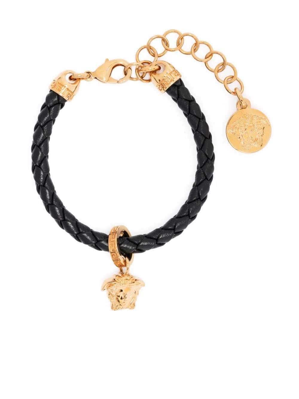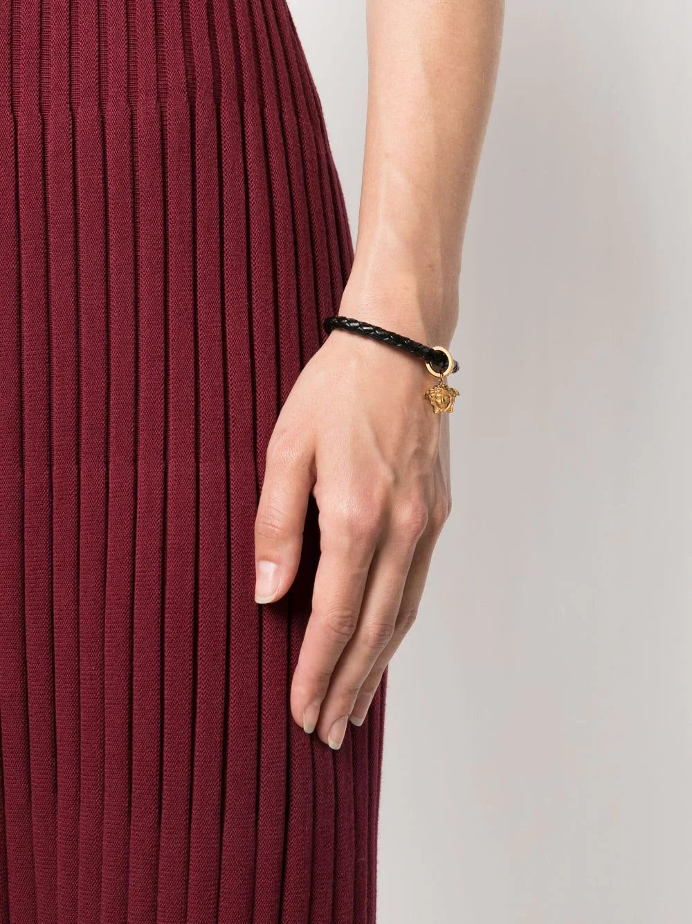 Adorned with the brand's iconic Medusa plaque, this bracelet from Versace is constructed from black calf leather in a delicate braided design.