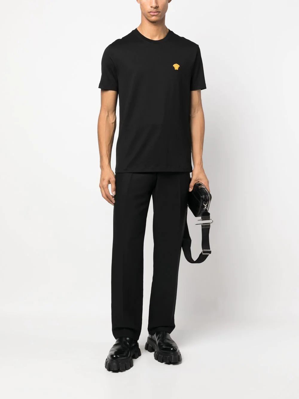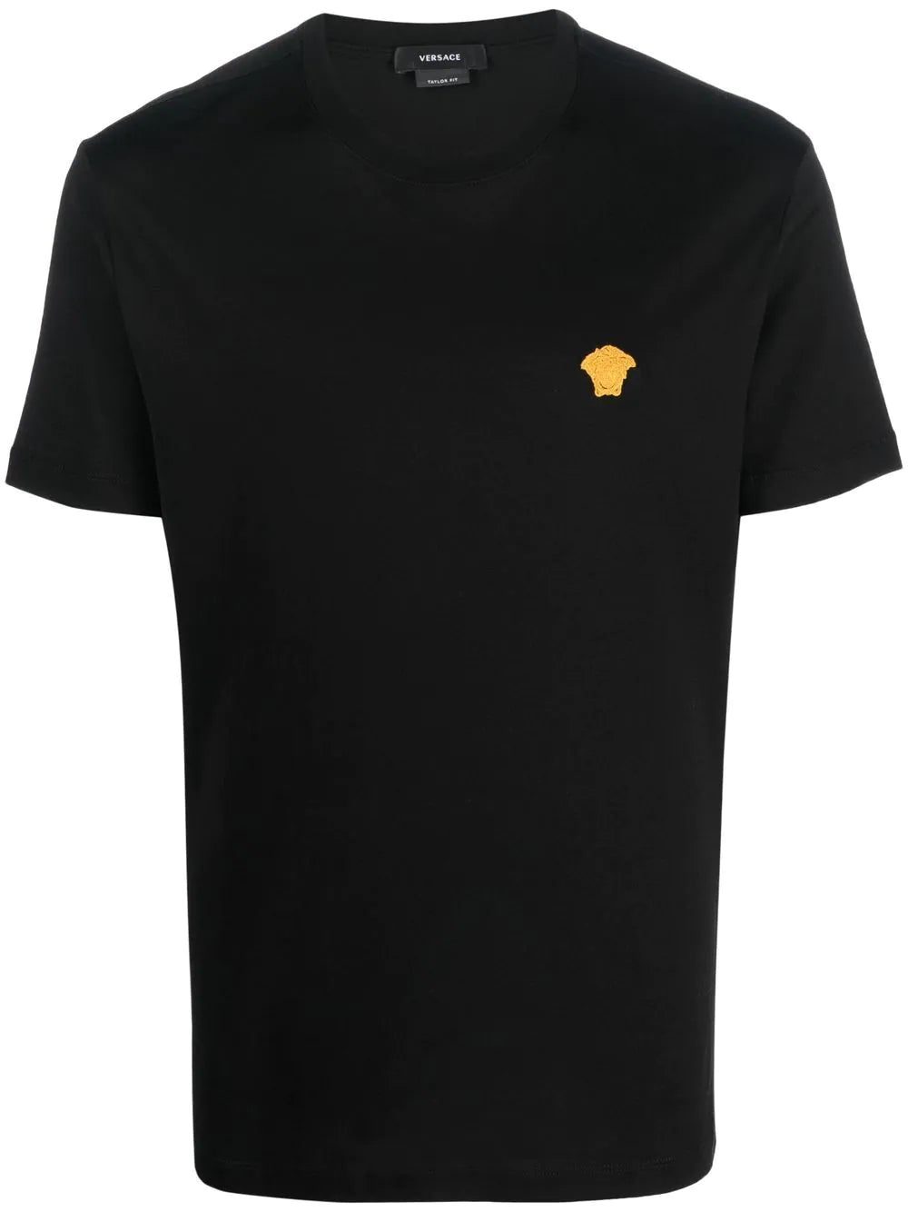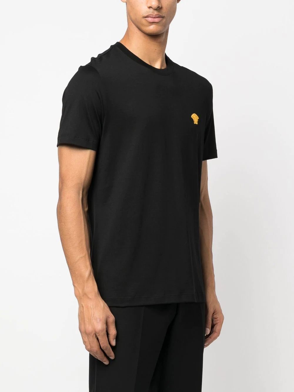 Crafted from cotton, this round-neck T-shirt from Versace is presented in a timeless black hue. The Medusa head embroidery adorns the short-sleeve piece for a signature brand touch.