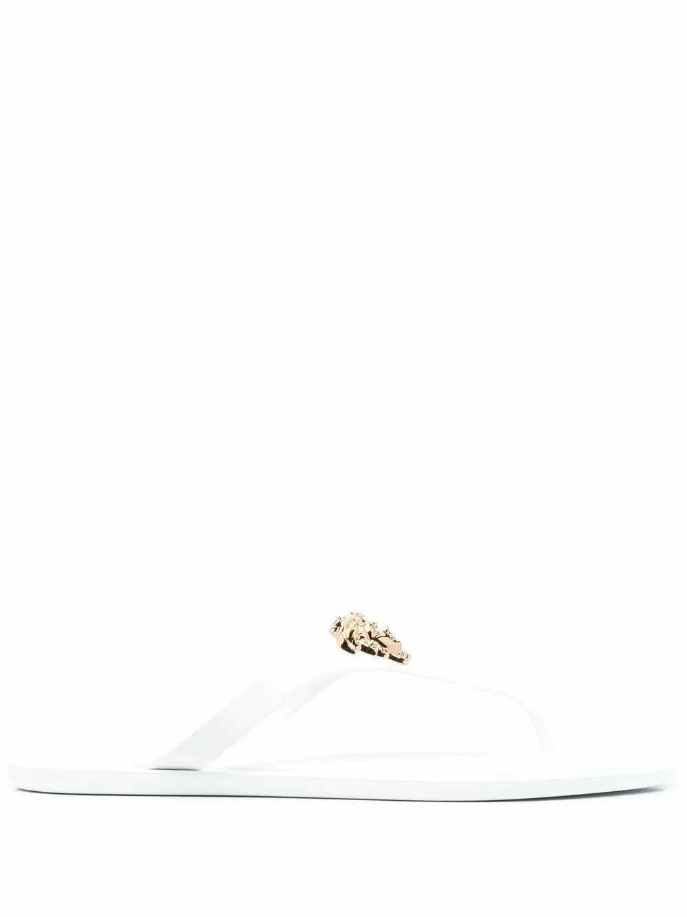 With contemporary design at the label's core, these Versace flip-flops boast the brand’s iconic gold-tone Medusa Head motif and are complete with a crisp white thong strap for a striking look.