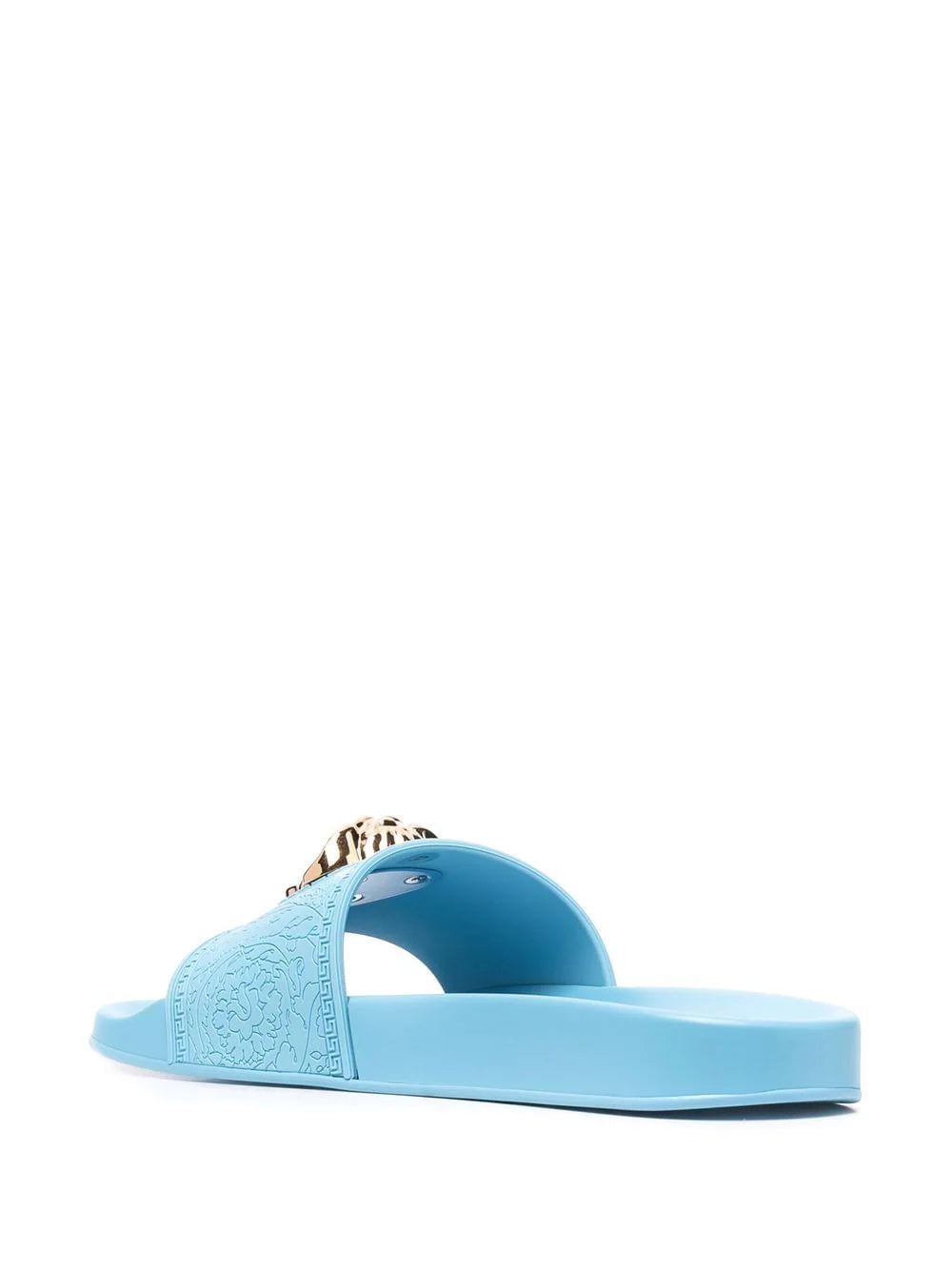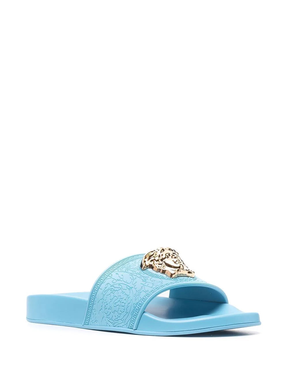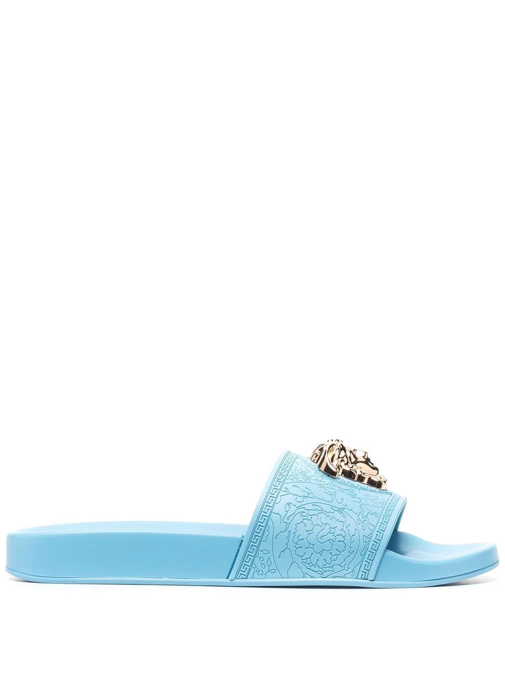 Inspired by Greek mythology, Versace's use of the Medusa head is now synonymous with the brand. Featured at the front of these open-toe sliders in silver-tone hardware, it symbolises the brand's opulent style and the ancient figure's power, strength and beauty.
