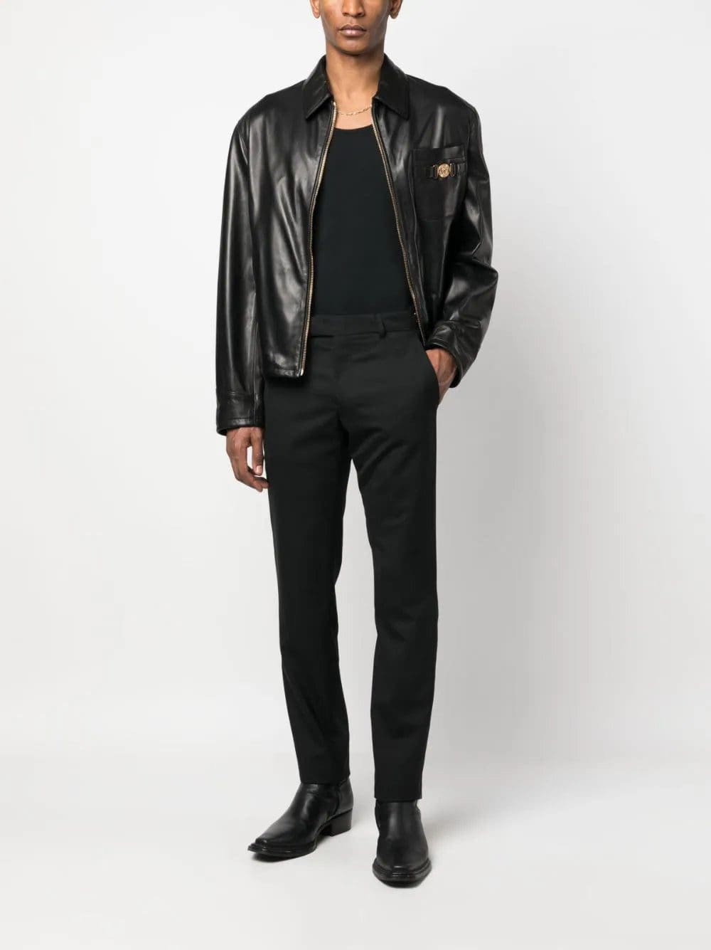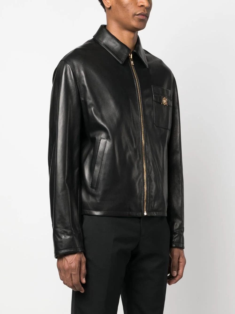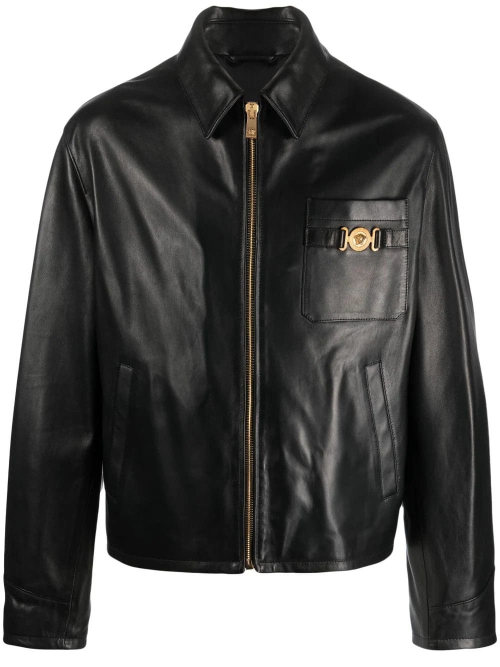 Versace Medusa logo-plaque leather jacket