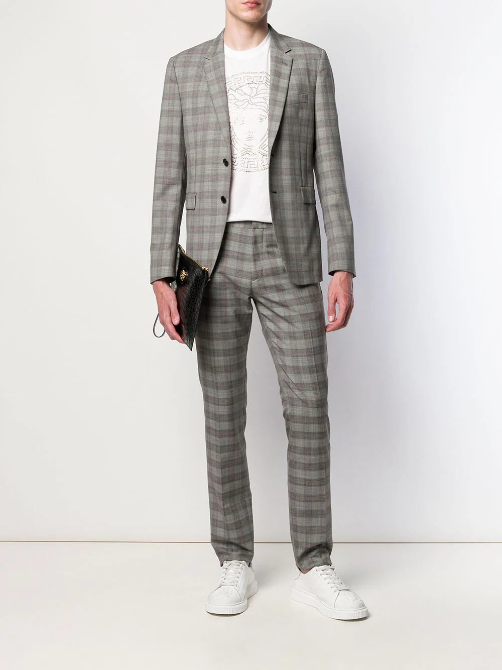 Versace goes beyond utilising their actual designer name to represent their rich Italian heritage and contemporary design ethos. Instantly-recognisable house codes such as the Greek goddess-inspired Medusa head motif have become renowned symbols of the brand. This white cotton Medusa motif studded T-shirt from Versace features a round neck, short sleeves and a gold-tone studded Medusa head motif to the front.