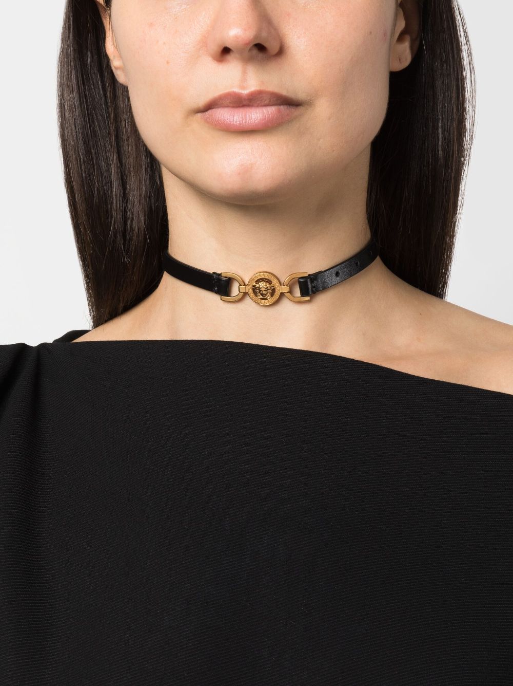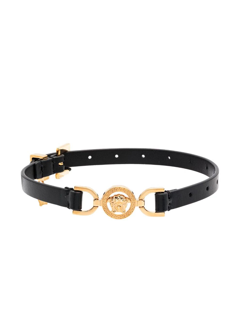 A front Medusa plaque renders this Versace necklace a recognisable piece. It's crafted in Italy from smooth calf leather and finished with polished gold-tone hardware for an opulent finish.