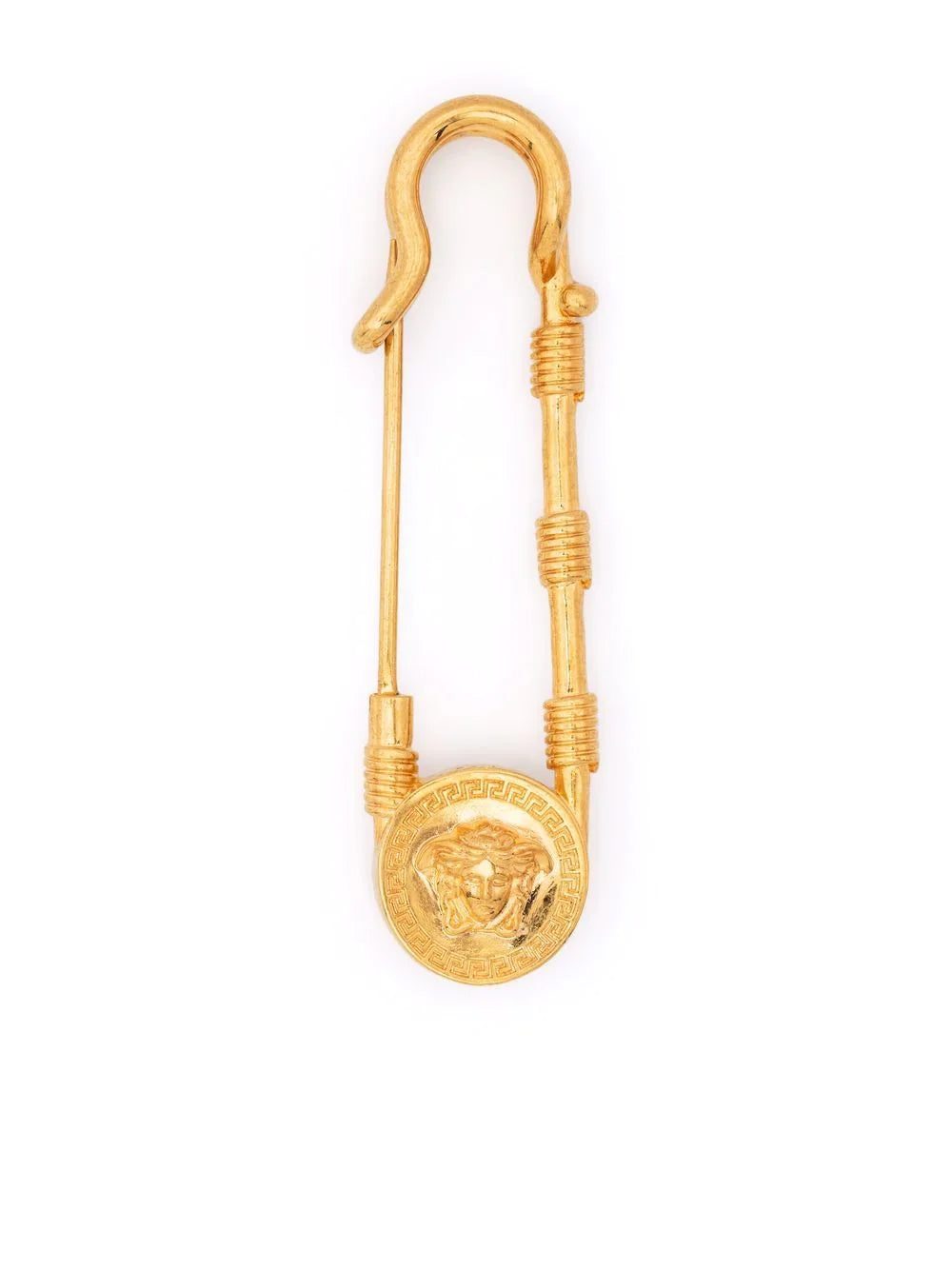 Versace's iconic Medusa logo appears throughout the AW21 collection and this gold-tone metal Medusa safety pin is a versatile addition.