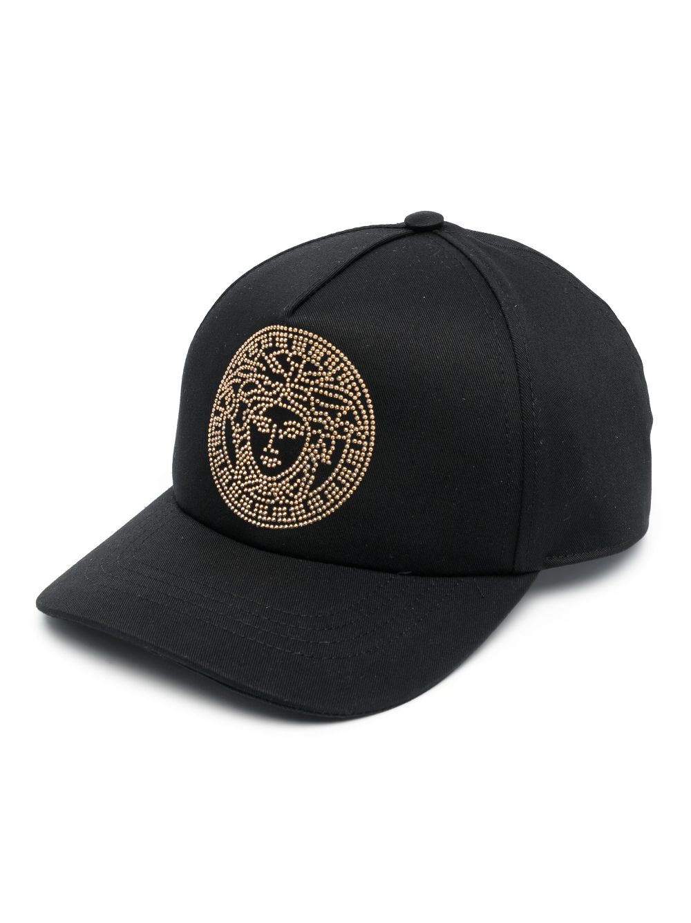 Spun from black cotton, this cap from Versace is adorned with the emblematic Medusa head motif at the front. Gold-tone studs offer a glamorous touch to the accessory, complete with a contrasting logo embroidered to the back.