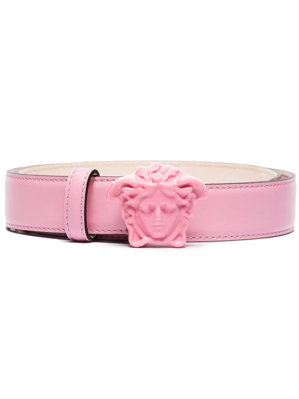 Crafted in Italy from soft leather, this baby pink belt obeys Versace's use of Greek mythology motifs and statement colours. With the brand's signature Medusa head as a buckle, this SS22 accessory is finished with refined gold-tone hardware.