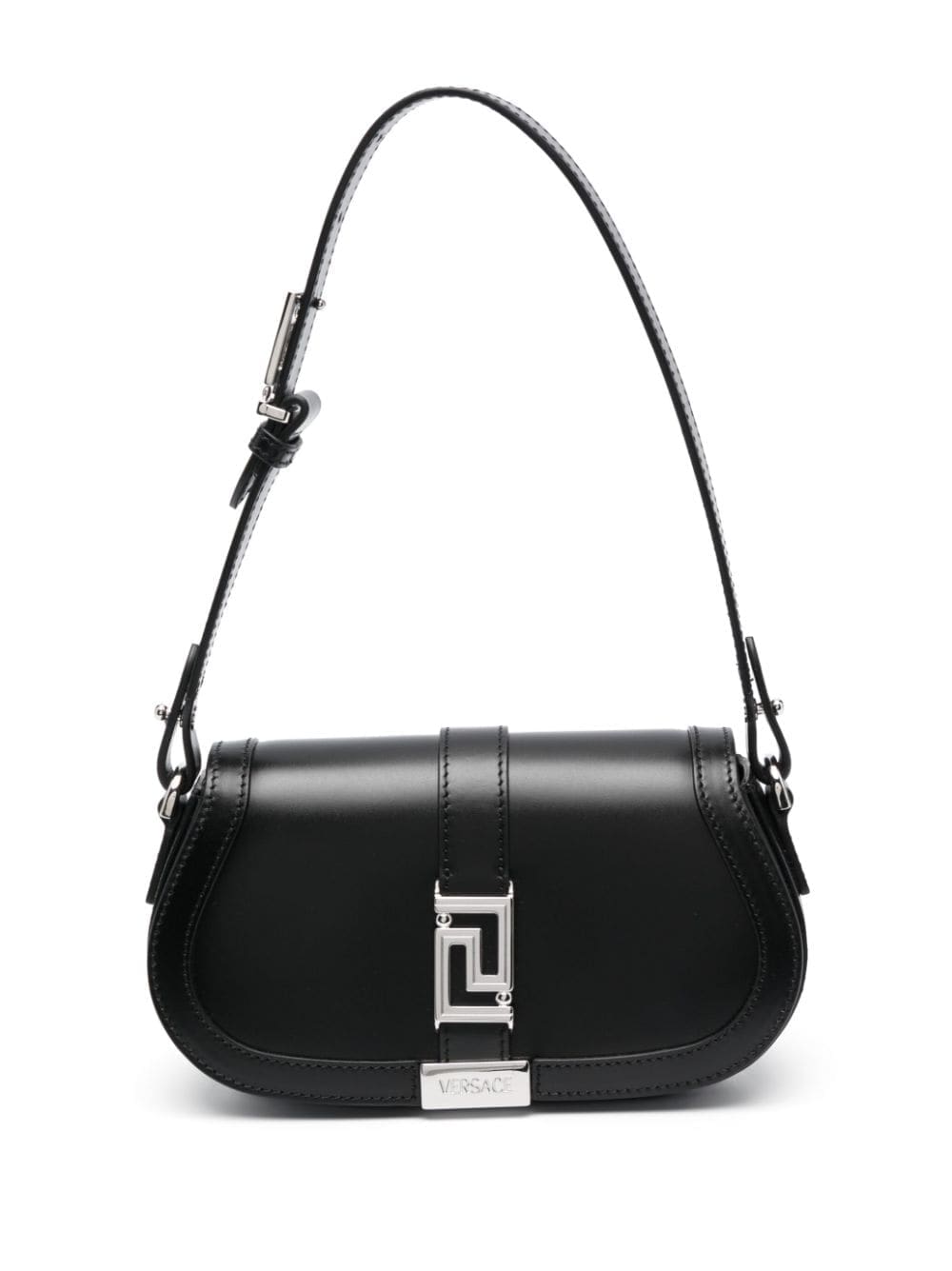 Signature branding underpins Versace's designs, as evidenced by the Greca Goddess shoulder bag. Constructed in Italy from smooth leather, this accessory is punctuated with the iconic Greca chain hardware.
