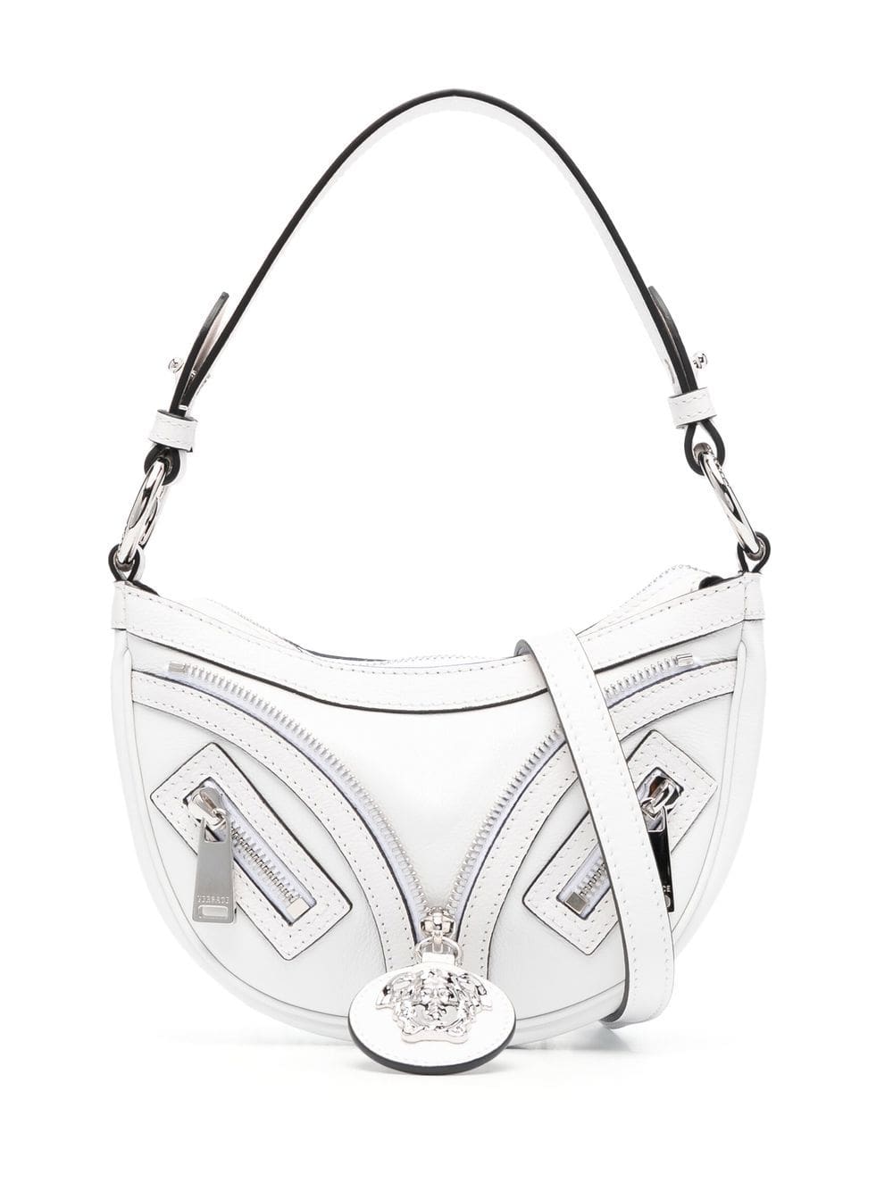 cloud white calf leather/cotton zip details silver-tone hardware Medusa plaque detail single flat top handle top zip fastening front zip fastening pockets